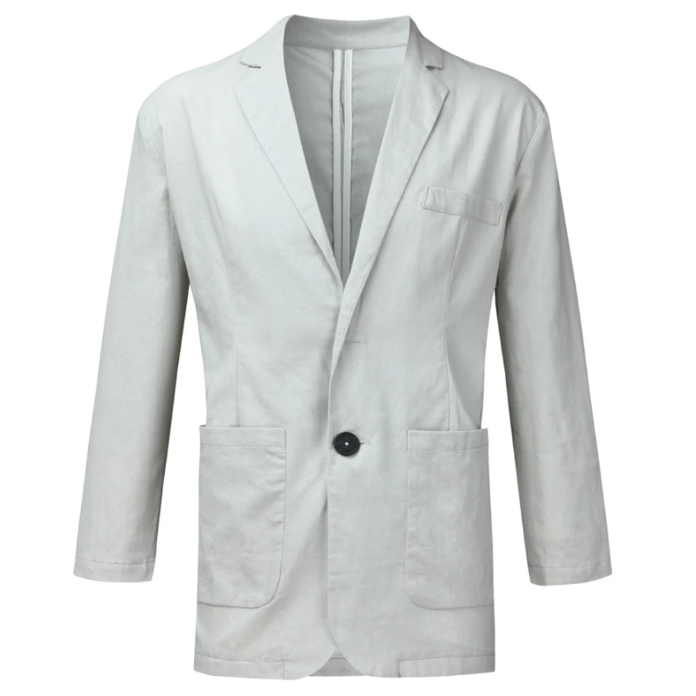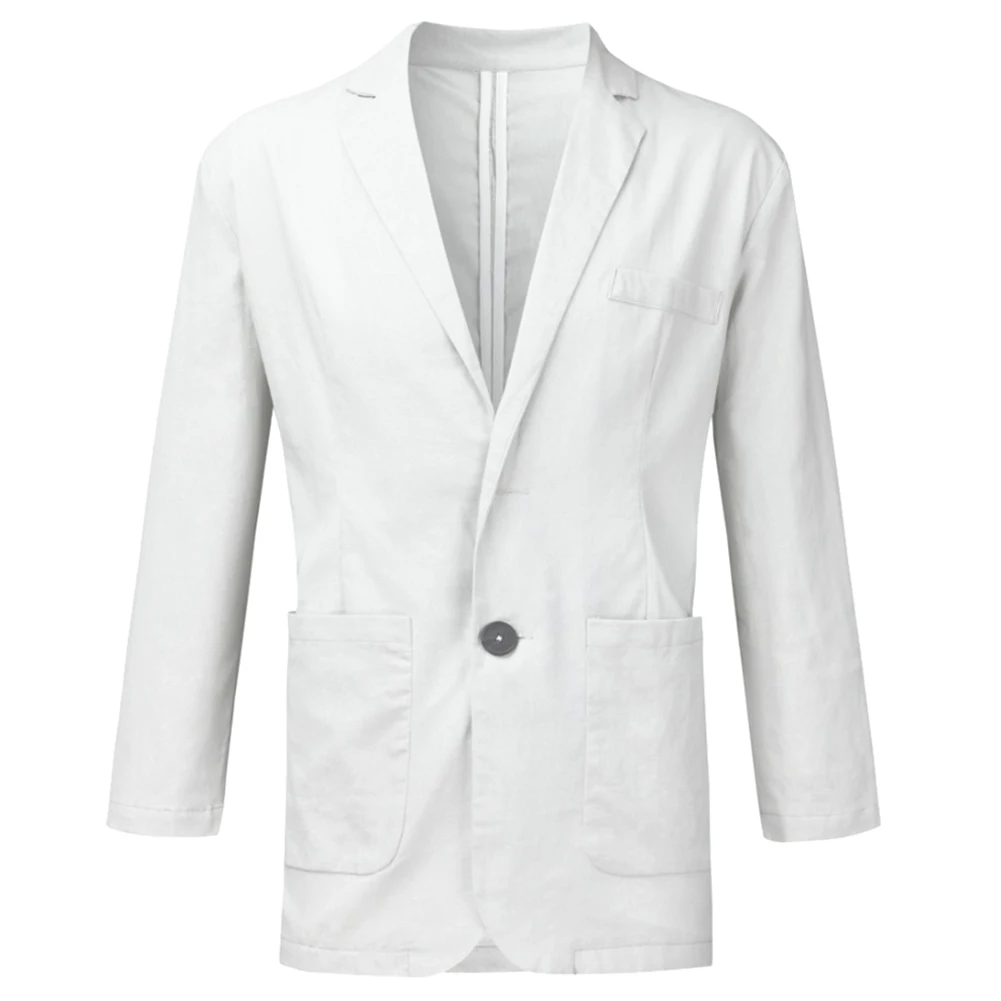 Мужское осеннее пальто, однотонный приталенный Блейзер из хлопка и льна с длинными рукавами и карманами, застежка на одной пуговице