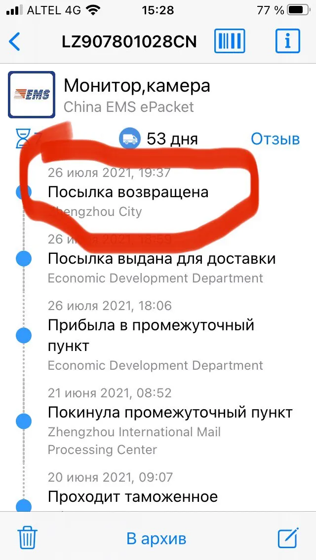 Всем привет. Сделал заказ монитор и камеру. Прождал 52 дня и товар завернули обратно на таможне китая. Открыл спор но продавец писал типо ждите товар доставляется - куда мля доставляется когда пять программ пишут вернули обратно. В общем вмешался алиэкспресс и деньги вернули. Блиннн 52 дня ожидания коту под хвост!