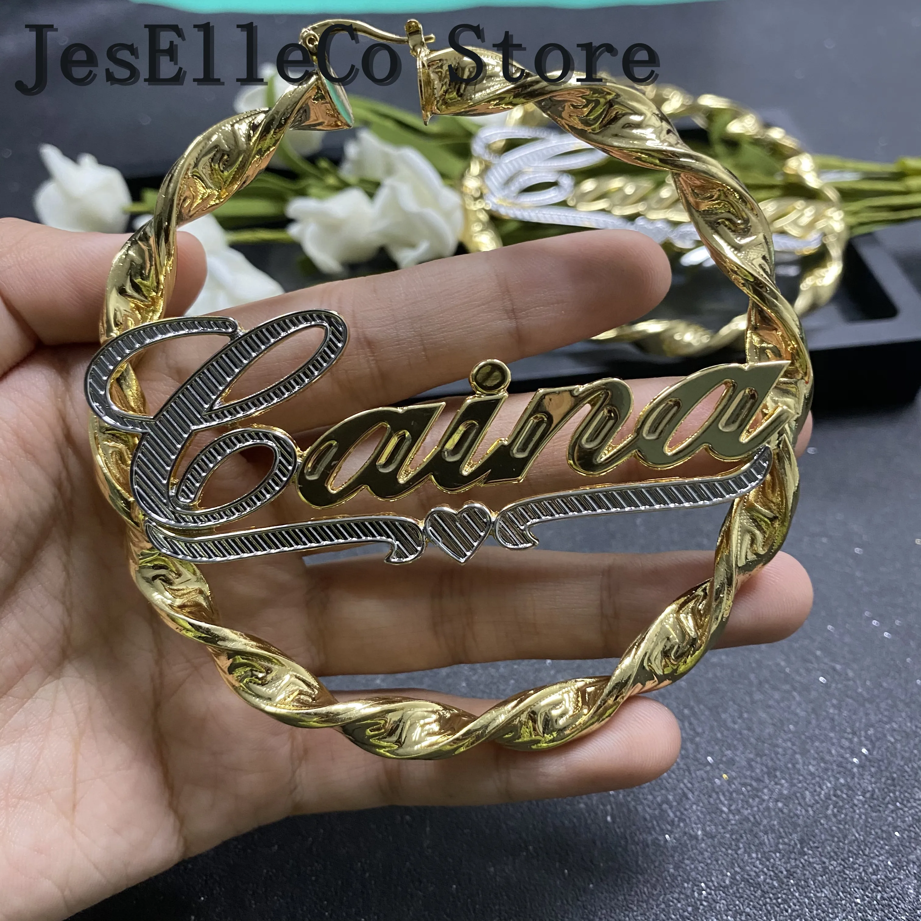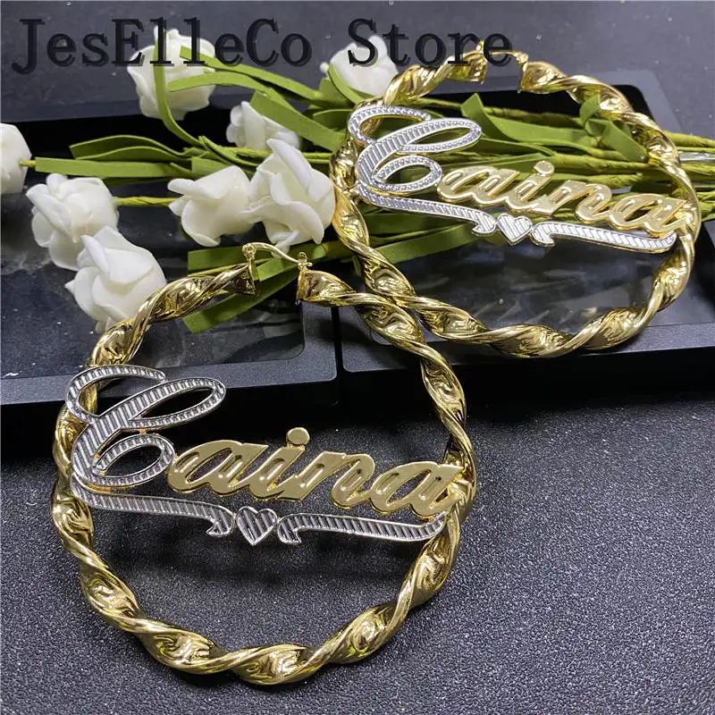 Набор из бамбуковые обручи серег в стиле хип-хоп, с именем на заказ...
