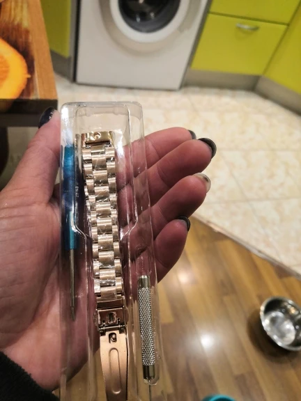 Отличный ремешек, после 2х резиновых заказанных на Али, которые продержались неделю один и два дня другой, вообще супер. Смотрится солидно, легко отрегулировать длинну, все инструменты есть в комплекте. Упакован в блистер и обмотан в полиэтиленовую плёнку, но пришёл с потёртостями, видно на фото. Обидно ((