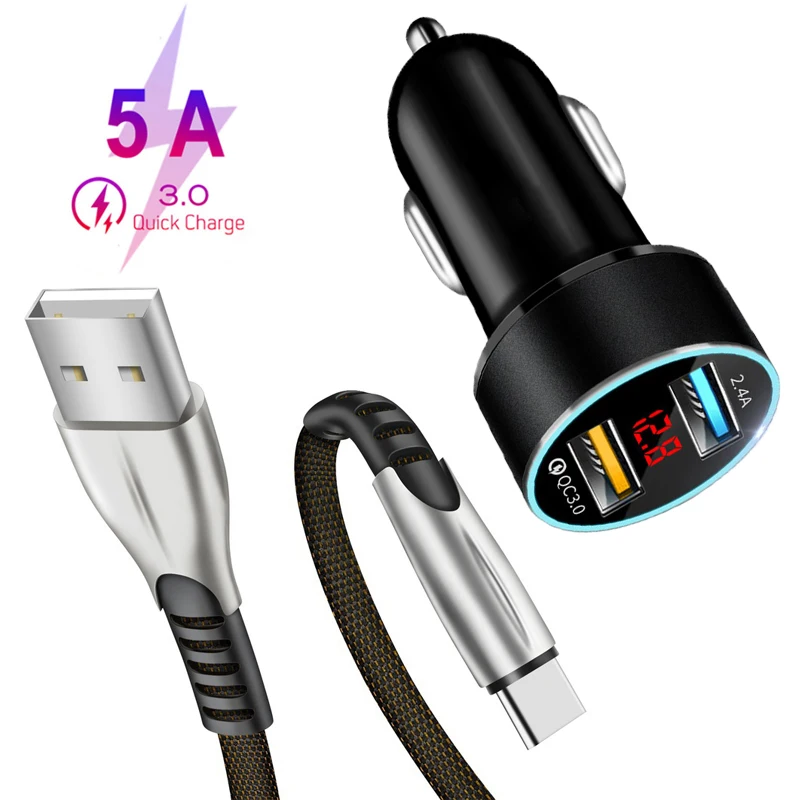 QC 3,0 Автомобильное зарядное устройство кабель для OPPO A52 A72 A92 A92S Samsung S20 S10 A71 A51 A50 A70 Type C USB Супер быстрая зарядка данных автомобильное зарядное устройство