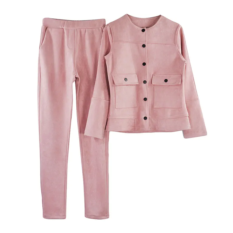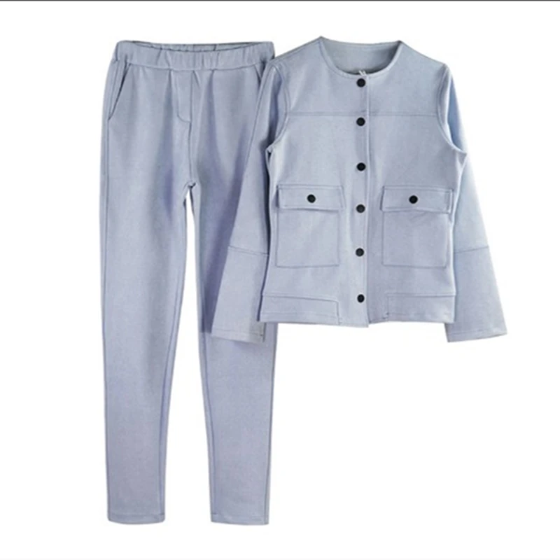Женский брючный костюм TYHRU, однобортный пиджак с карманами и брюки, костюмы из замши