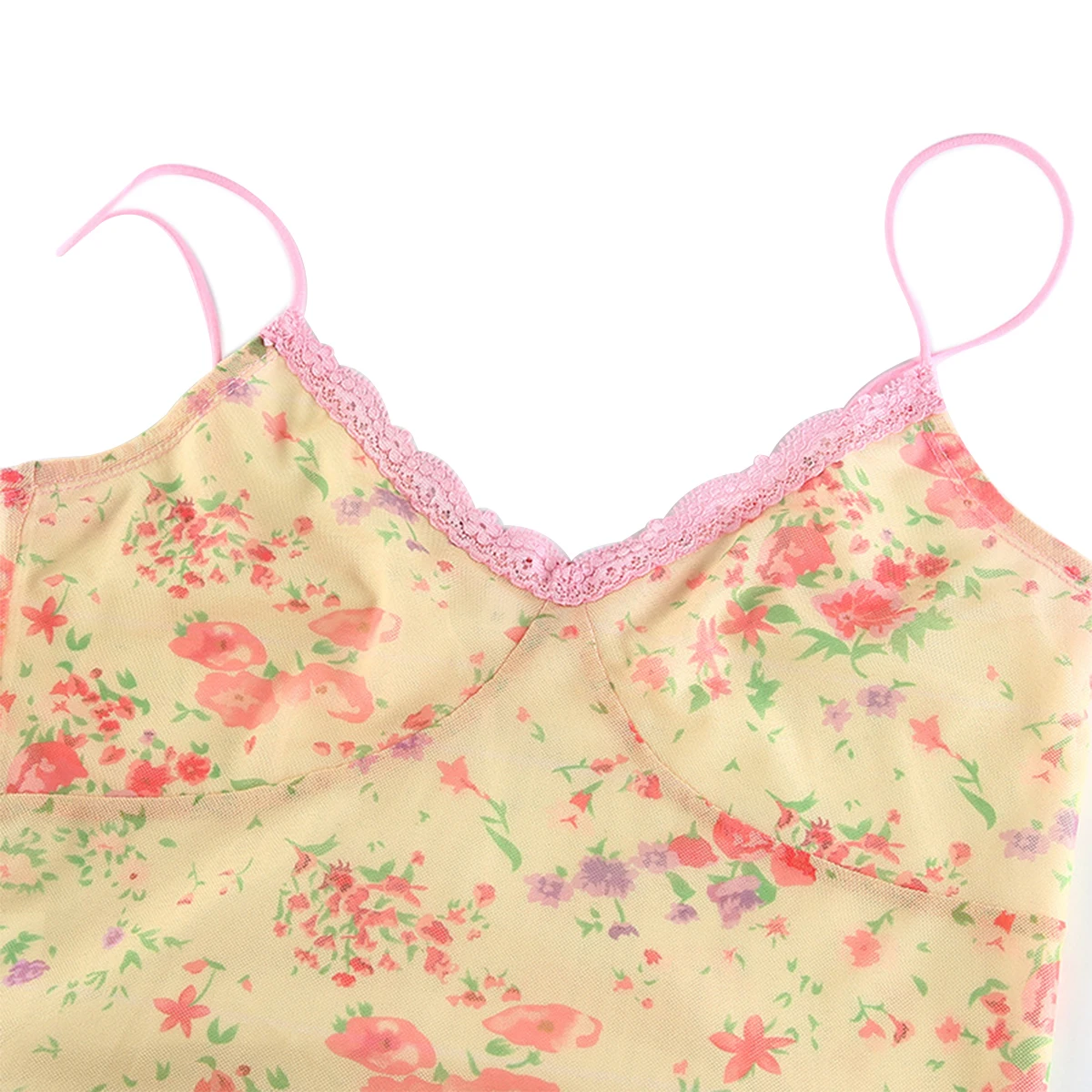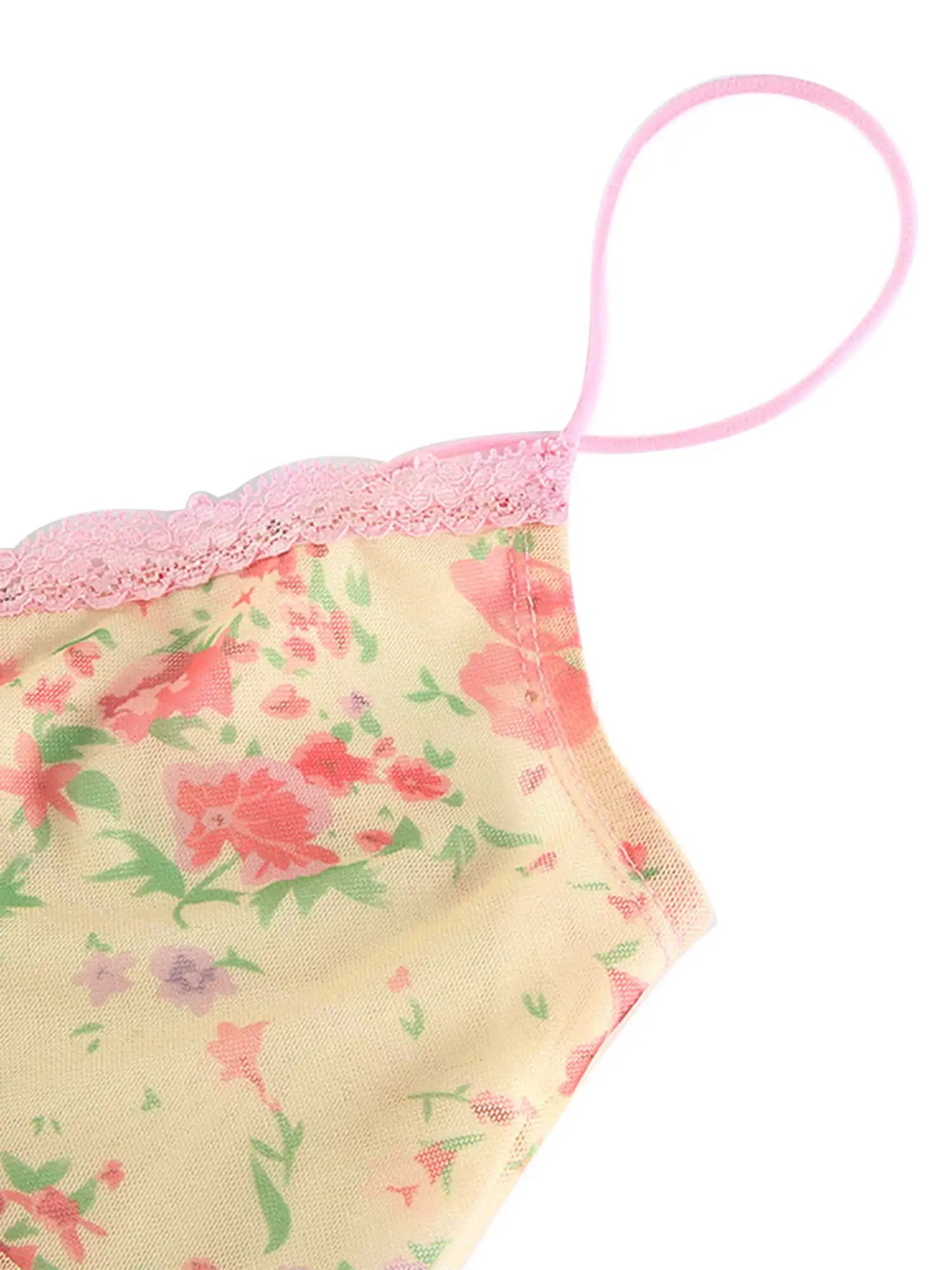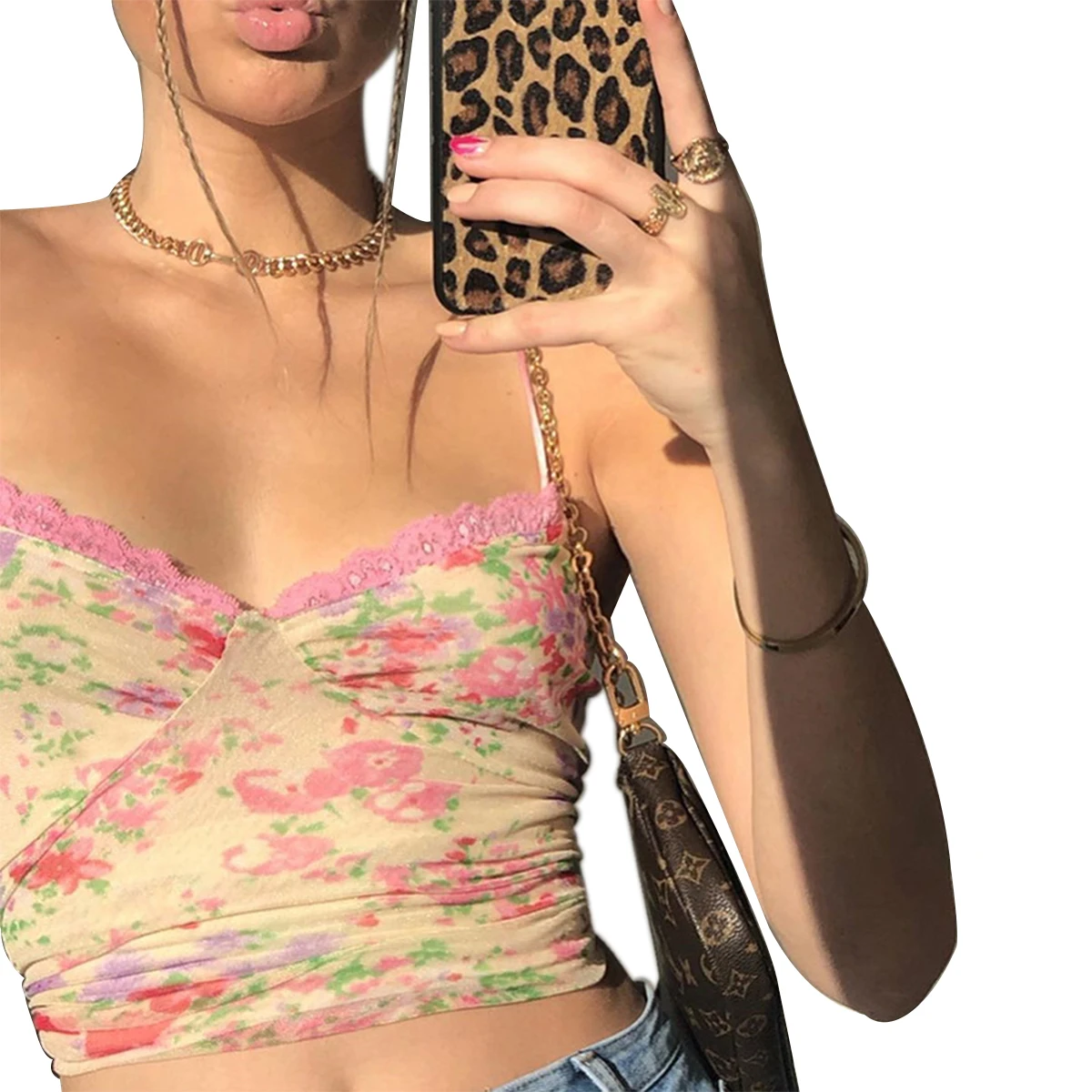 Топ женский летний, кружевной, с V-образным вырезом и цветочным принтом