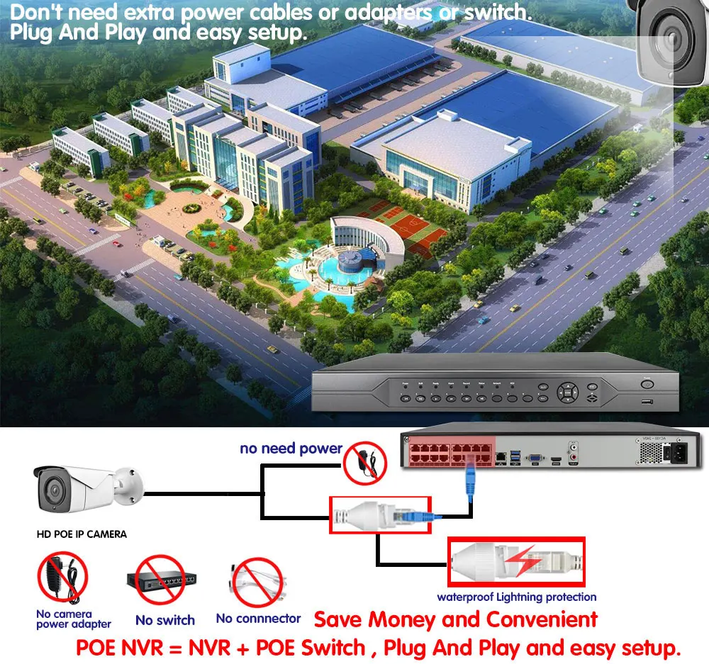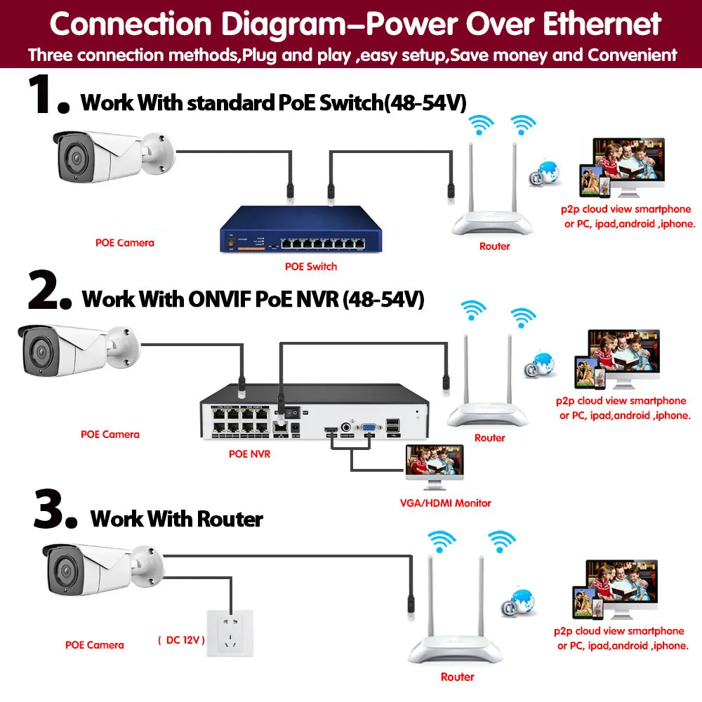 Нет дополнительных кабелей питания или адаптеров, просто подключив ip-камеру к NVR с помощью одного кабеля, вы можете легко завершить установку без знания о компьютере или сети и начать наслаждаться супер простым мониторингом среди вашего смартфона, планшета или ПК.
