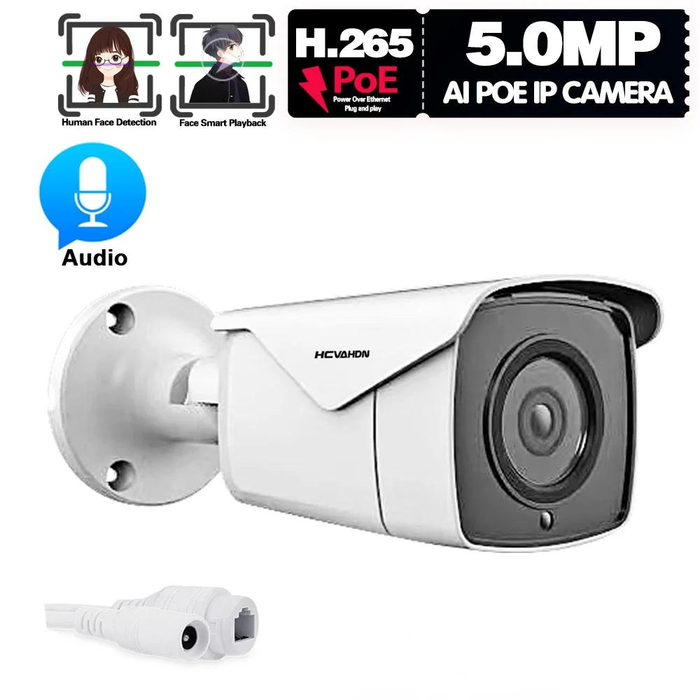 Камера Видеонаблюдения POE HD, уличная Водонепроницаемая цилиндрическая IP-камера наблюдения с функцией ночного видения и функцией обнаружения лица, 5 Мп