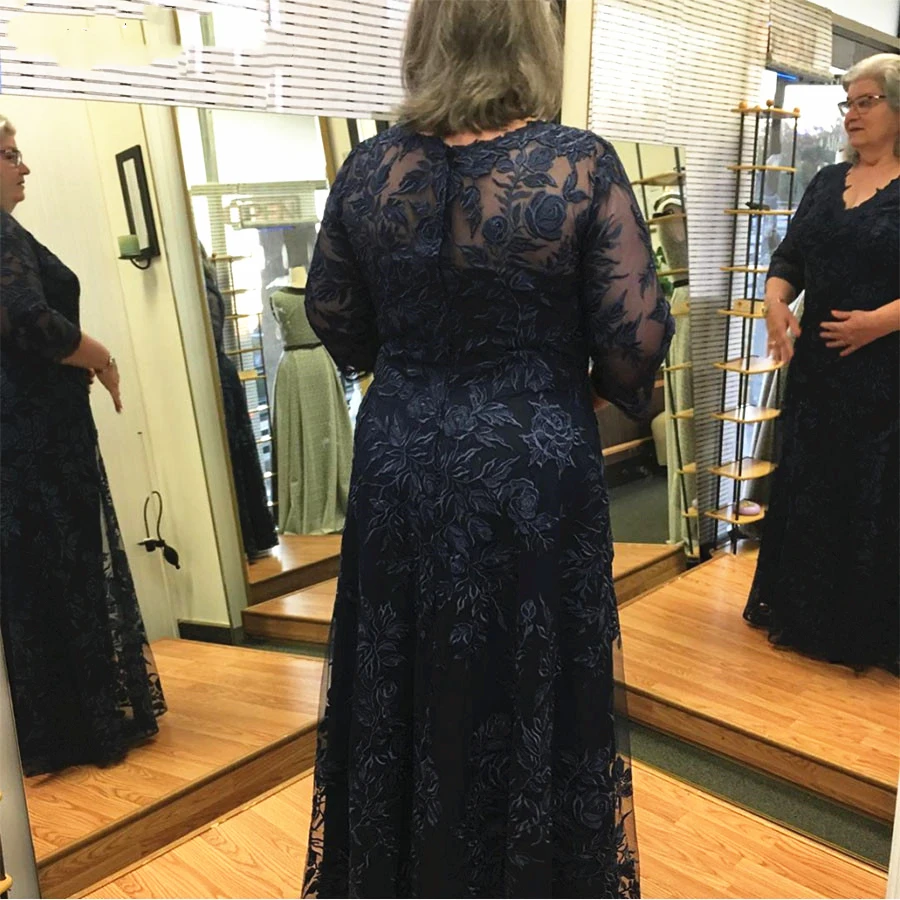 Темно-синее кружевное платье для матери невесты размера плюс с длинным рукавом для свадебной вечеринки вечернее платье для жениха