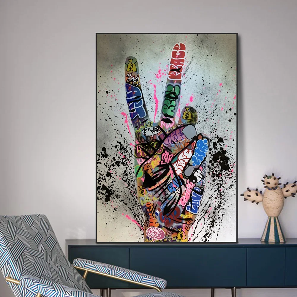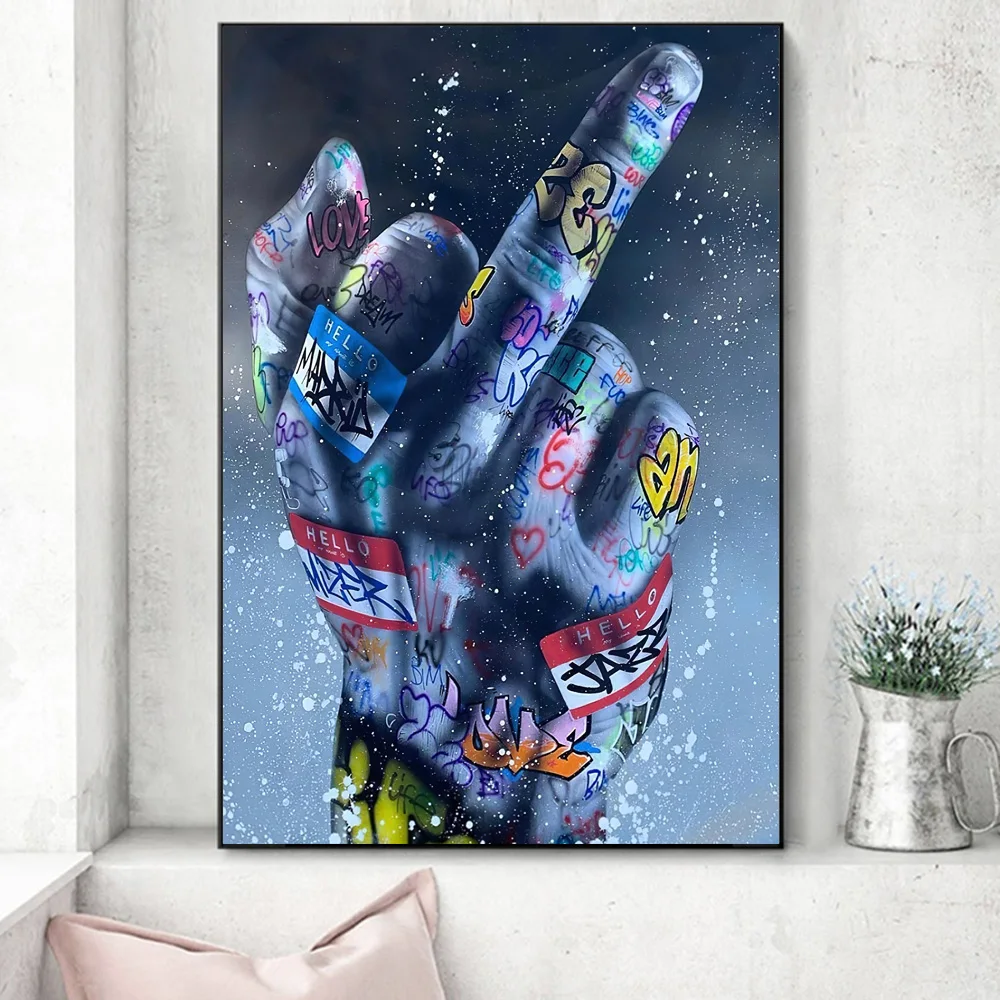 Абстрактный флуоресцентный плакат на средний палец, картина на стен...
