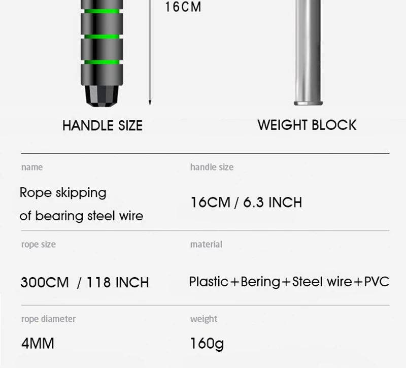 Подходит для бокса, ММА, аэробики и фитнес-тренировок.Веревку можно отрегулировать по длине в соответствии с вашим ростом.Он может сжигать калории и жир во время тренировки мышц во время прыжков.Легкая, прочная и удобная ручка позволяет легко брать и носить с собой.Система с двумя шарикоподшипниками и небольшим кабелем могут быстро проходить по воздуху, что увеличивает скорость.Спецификация:Длина ручки скакалки: 6 дюймов.Длина веревки для фитнеса: 9 футов.Примечание:1. Пожалуйста, начните медленно, чтобы избежать случайных повреждений на быстрой скорости.2. Пожалуйста, выберите открытую зону для скакалки и будьте осторожны, если кто-то останется рядом с вами.Спецификация:Материал: пластик + подшипник + стальная проволока + ПВХЦвет: черный, красный (обычная практика)Сфера применения: фитнес-оборудование, фитнес-бодиИспользование: похудение, фитнес, развлекательные тренировкиРазмер: длина ручки 16 см, длина троса 3 метра, Диаметр троса 4 мм (длину троса можно регулировать в соответствии с высотой).ОсобенностиПот, дезодорант, влагостойкий, экологически чистый, мягкий и удобный.