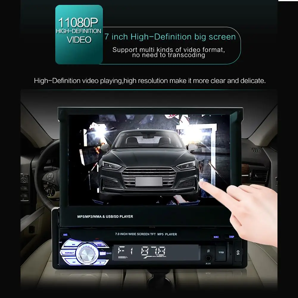 Особенности:1. Функция Bluetooth (ответ/телефонные звонки, воспроизведение музыки)2. Поддержка функцией заднего хода (камера 可选)3. Видео вход: Поддержка автомобиля DVR камера видео дисплей4. 7-дюймовый резистивный сенсорный экран может быть сложен5. RDS AM/FM радио6. Поддержка картридера, u-диска (аудио/видео/Воспроизведение изображений)7. Функция AUX8. Функция Bluetooth9. Улучшенный микрофон, более четкий телефонный звонокХарактеристики:Модель: 9601 модернизированнаяТип: MP5 плеерСистема: winceЧип декодера: C200Размер экрана: 7 дюймов резистивный сенсорный экранРазрешение экрана: 1024*600Кнопка светильник: в наличии 7 цветов, светильникСистема времени: 12 часов/24 часа системы РегулируемыйВремя работы в режиме ожидания: не поддерживаетсяМобильный телефон: Поддержка AndroidМобильный телефон зарядка: Поддержка Android мобильный телефон зарядкаРадиосвязь: FM1/FM2/FM3/AM1/AM2Радиочип: QN8035RDS: ПоддержкаOBD: не поддерживаетсяМульти-Язык: китайский/английский/испанский/португальский/русский/итальянский/немецкий/французский/Польский/ТурецкийВидеовыход: 2 канала видеовыхода (не поддерживает двойной экран)Реверсивный Видео вход: ПоддержкаМетод обнаружения заднего хода: Обратный светильник, подключенный к источнику заднего ходаТелевизор: не поддерживаетсяПароль подключения Bluetooth: для нескольких мобильных телефонов может потребоваться пароль, пароль: 0000Настройка логотипа: не поддерживаетсяФункция напоминания о тормозе: ПоддержкаФункция управления рулем: ПоддержкаBluetooth: версия Bluetooth 4,0Чип усилителя: TDA7388Радиочастота: 87,5 ~ 108,0 МГц, 522 ~ 1620 ГцСлот для карты памяти: для карты памяти TF (не входит в комплект)USB порт: 1 x USB2.0Кнопка сброса: не поддерживаетсяОригинальный Автомобильный руль управления: ПоддержкаRCA терминал Введение: 2 канала видео выход, 1 канал Реверсивный вход 2 канала аудио выход, 1 канал видео входПередний aux аудио вход: поддержкаРегулятор громкости: ПоддержкаПоддерживаемые Аудиоформаты: MP3/WMA/WAV/APE/FLACПоддерживаемые форматы видео: RM/RMVB/AVI/MP4/MKV/3GPПоддерживаемые форматы изображений: JPGВес: 1700 гРазмер: 184*158*50 ммПримечания:1. Дисплей не выходит автоматически. Вам нужно вручную нажать или потянуть.2. Если размер установки автомобиля стерео и размер машины совпадают, он может быть установлен и использован.3. При установке машины убедитесь, что провод правильно подключен. Если установка не работает на машине, Пожалуйста, подключите красный провод и желтый провод к положительному полюсу источника питания 12 В, черный провод к отрицательному полюсу источника питания, попробуйте проверить, может ли машина нормально включаться. Если он может быть включен нормально, то это может быть из-за проблемы с проводкой, вы можете обратиться за нашей помощью, чтобы вы могли лучше использовать продукт.Список:1 х Автомобильный MP5 плеер1 пульт дистанционного управления1 х Кабель питания1 x Руководство пользователя1 x GPS модуль (опционально)1 камера (опционально)