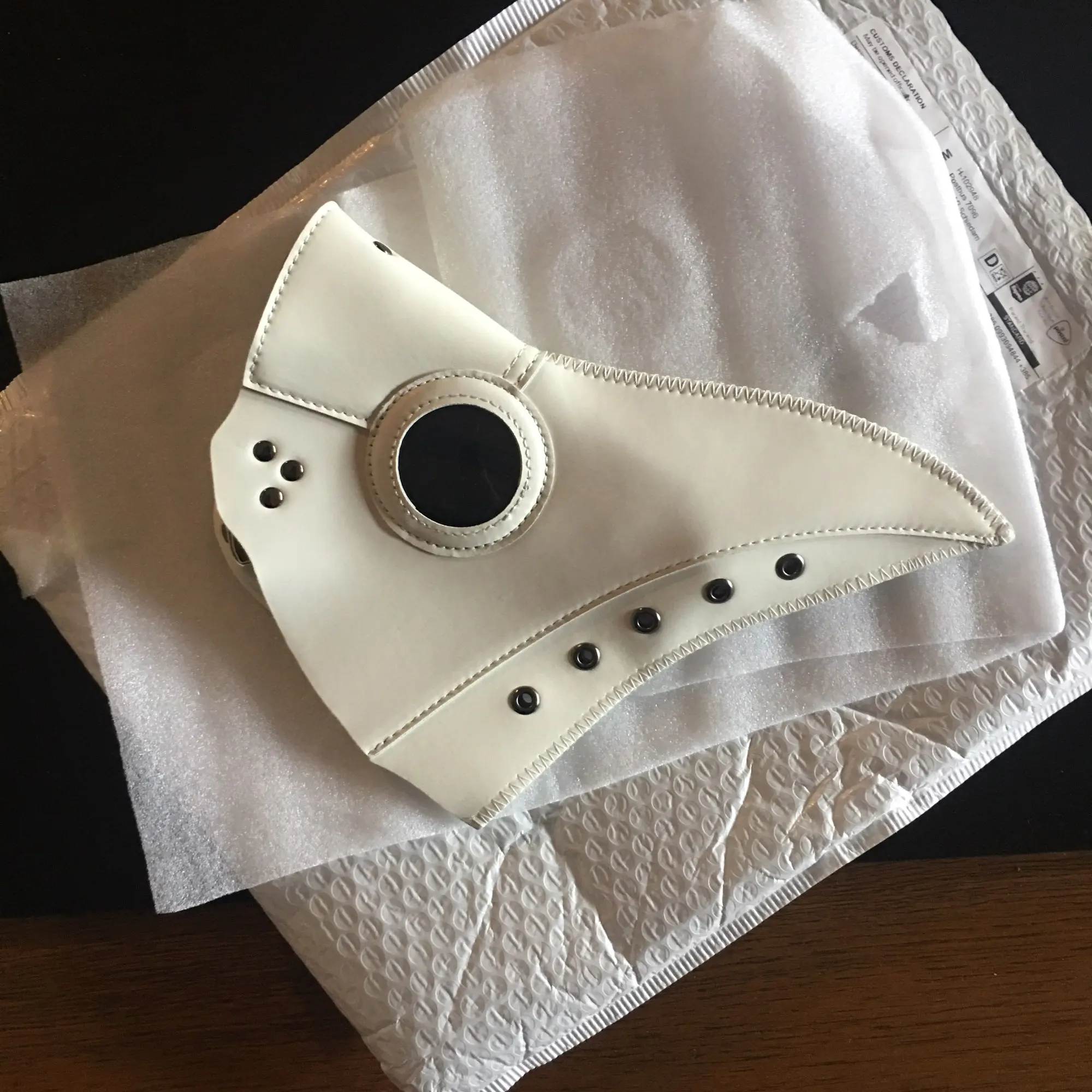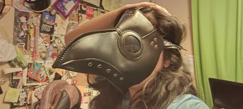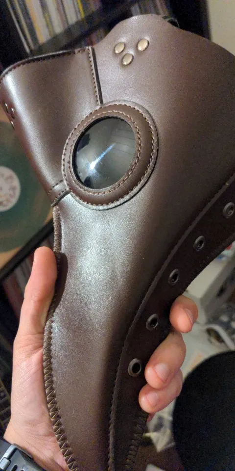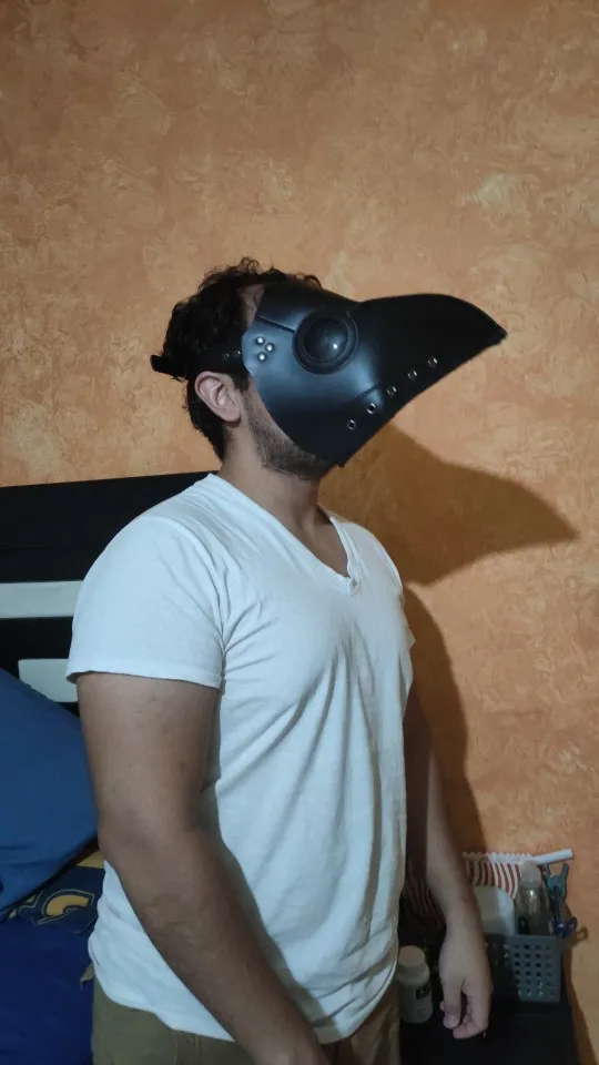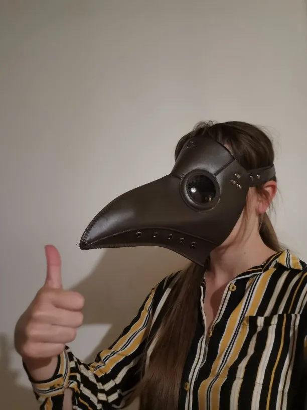Шикарная маска, придраться можно только к тому что если у вас большое лицо довольно трудно будет натянуть её, так чтобы все было видно в ней) общаться в такой маске сложно, тебя почти не будет слышно, после того как посылка пришла первым делом запихал в клюв бумагу чтобы нормализовать внешний вид клюва