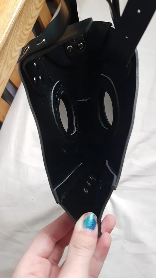 Маска абсолютно потрясающая! Ребенок доволен без конца Искусственная кожа очень высокого качества, без неприятного запаха, без дефектов, без царапин, все швы точные Принимаем время даже до
