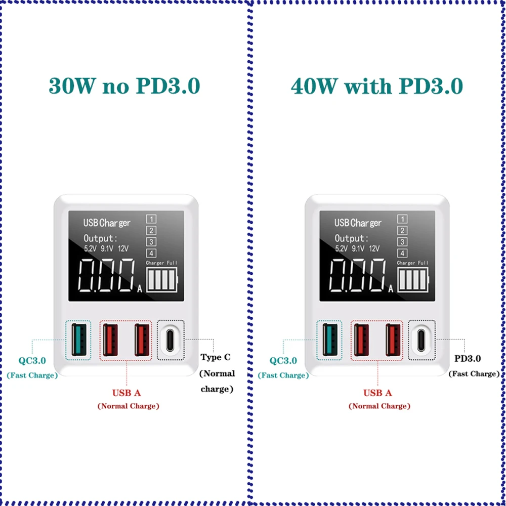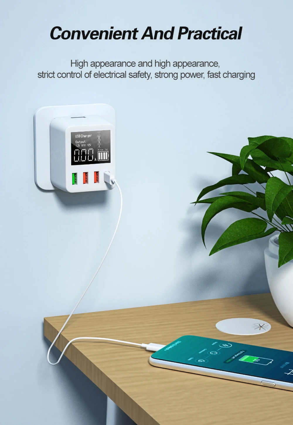 Настенное зарядное устройство с 4 USB-портами и поддержкой быстрой зарядки, 3040 Вт