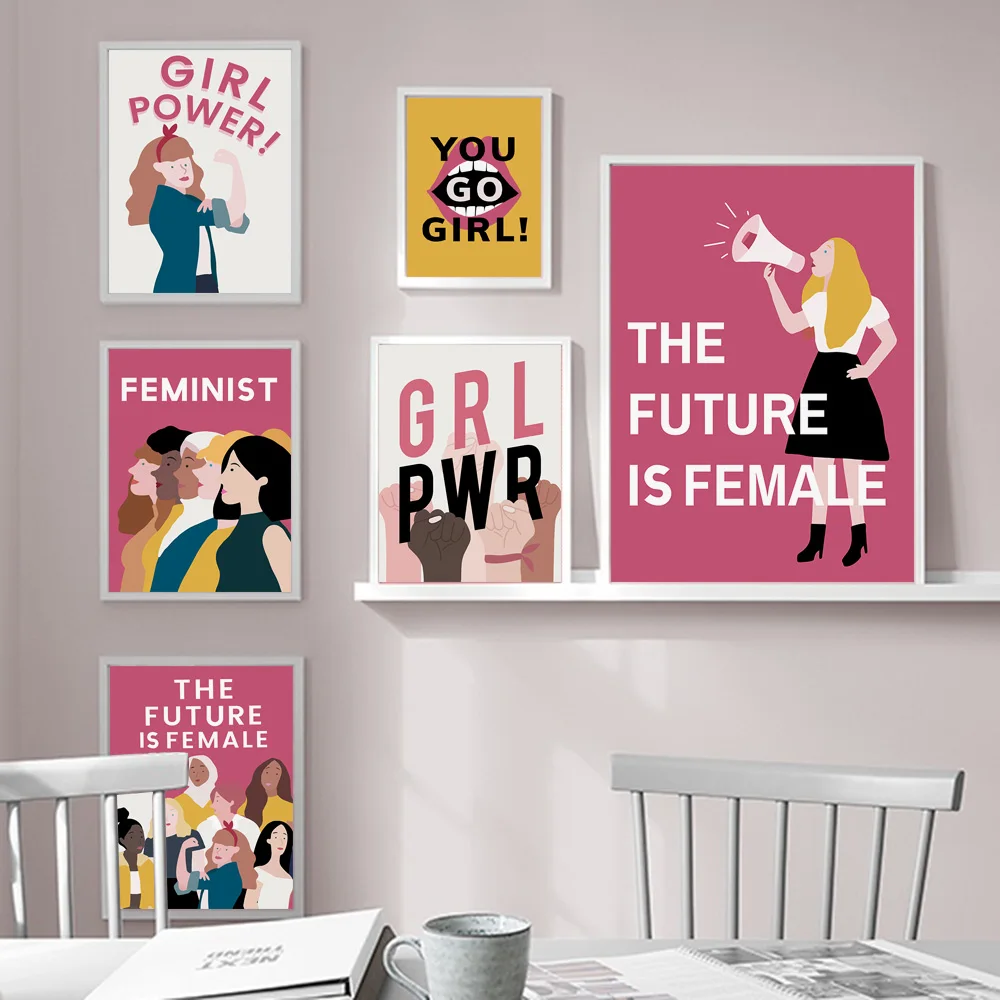 Плакат феминистки для женщин и девочек, Картина на холсте, скандинавские плакаты и принты, настенные картины для декора гостиной, для девочек