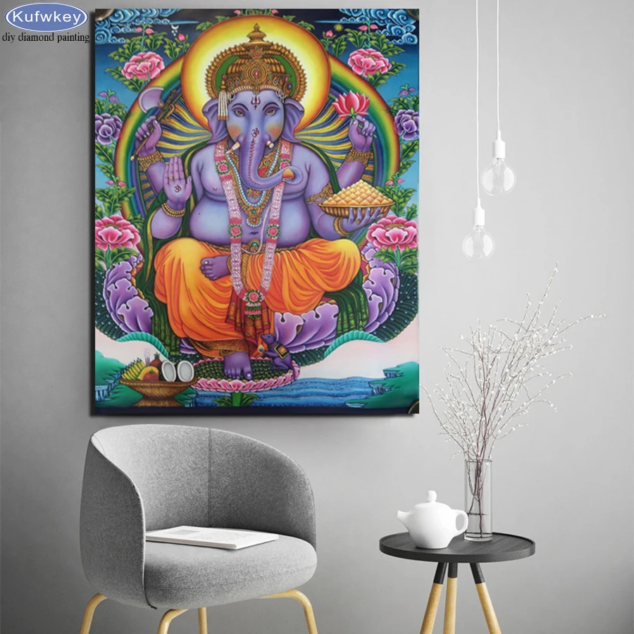 Полностью квадратная/круглая Алмазная картина индуистский слон Ганеш Будда вышивка крестиком Алмазная Мозаика Декор для стен