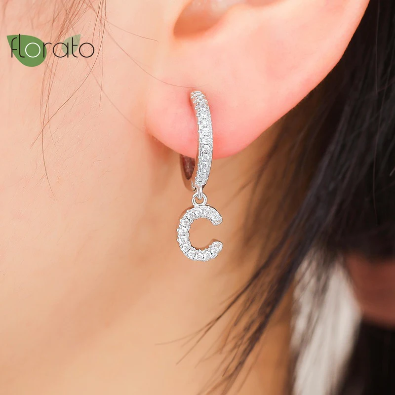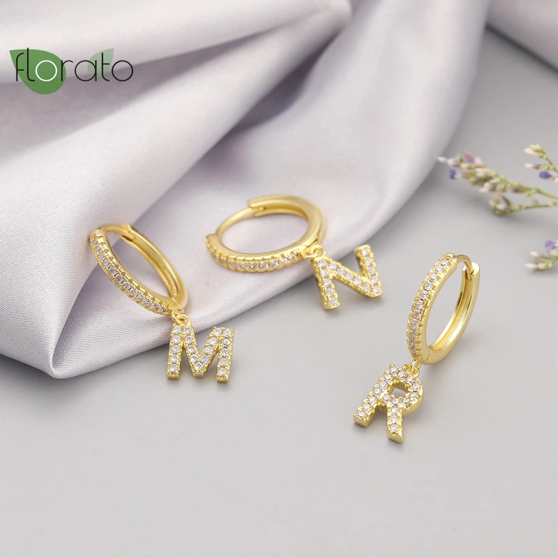 925 серебряные серьги-кольца с пряжкой, 26 букв, A-Z серьги с буквами, маленькие серьги с кристаллами CZ, гипоаллергенные серьги, модные ювелирные изделия