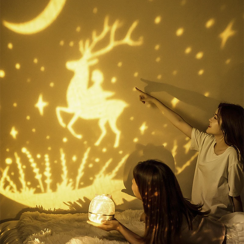 Новинка светодиодный вращающийся светильник-проектор со звездой ing Moon Starry Sky детский музыкальный ночной Светильник для сна обучающая игрушка для девочек