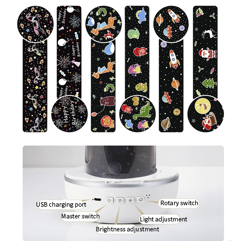 Светильник: светодиодный светильник для музыкального проектораНапряжение: <36 ВМощность: 1 (Вт)Есть желтый светильник, белый светильник и синий светильник, который можно переключить.Накройте его прозрачной крышкой, и он станет ночным светильник.Откройте прозрачную крышку и она станет проекционной лампой.Высококачественный мотор, бесшумное вращение, ультра-высокая яркость светодиодный.Условия: 100% НовыеРазмер кулона: 13*13,5 смМатериал: экологически чистый АБС-пластик.Упаковка: 1 штука в opp пакете с USBЦветной Вращающийся Романтический проектор может питаться от USB. Без шума, сопровождать вашего ребенка спать под звездами.(Случайная отправка новых и старых стилей!Новый стиль проекционной лампы имеет 4 кнопки)