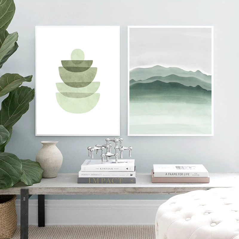 Акварельные зеленые абстрактные геометрические фигуры художественные принты скандинавский плакат мятно-зеленый холст картина настенные картины декор для гостиной