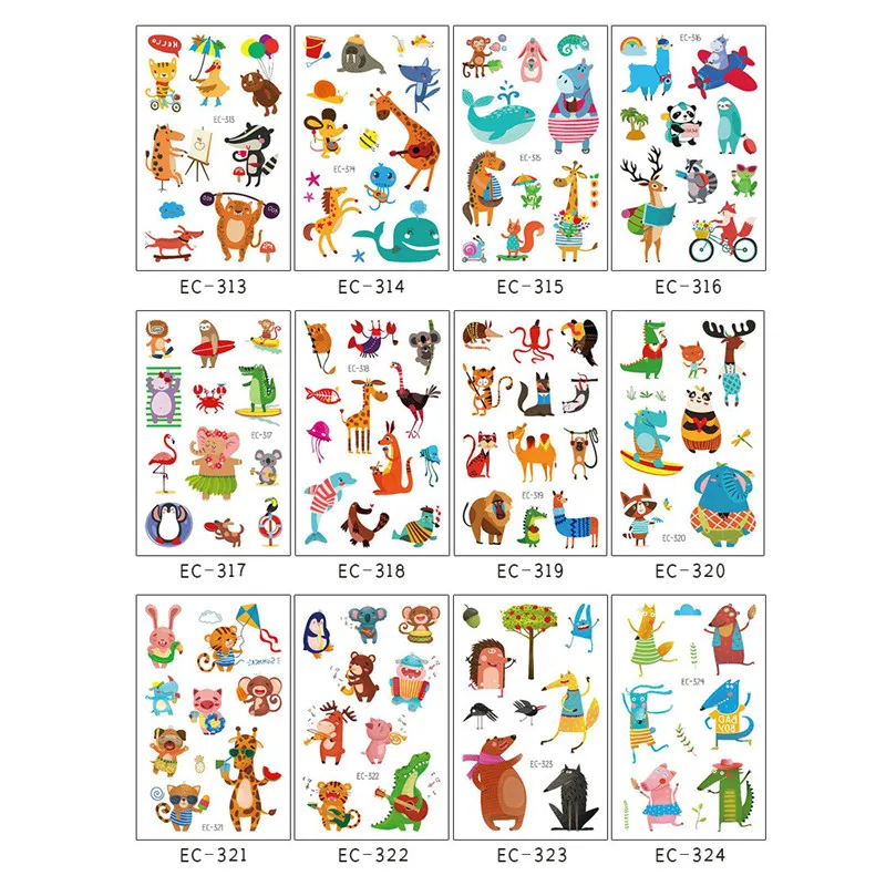 Детская татуировка, стикер, животные, мультяшная лошадь, тату для детей, детская татуировка, Медведь, Лев, радуга, милая татуировка для детей