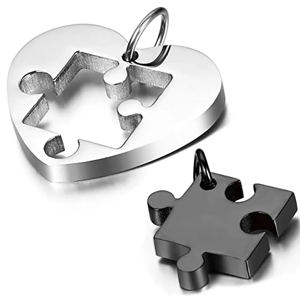 Подвески-пазлы в форме сердца, из нержавеющей стали, 2 шт.компл.