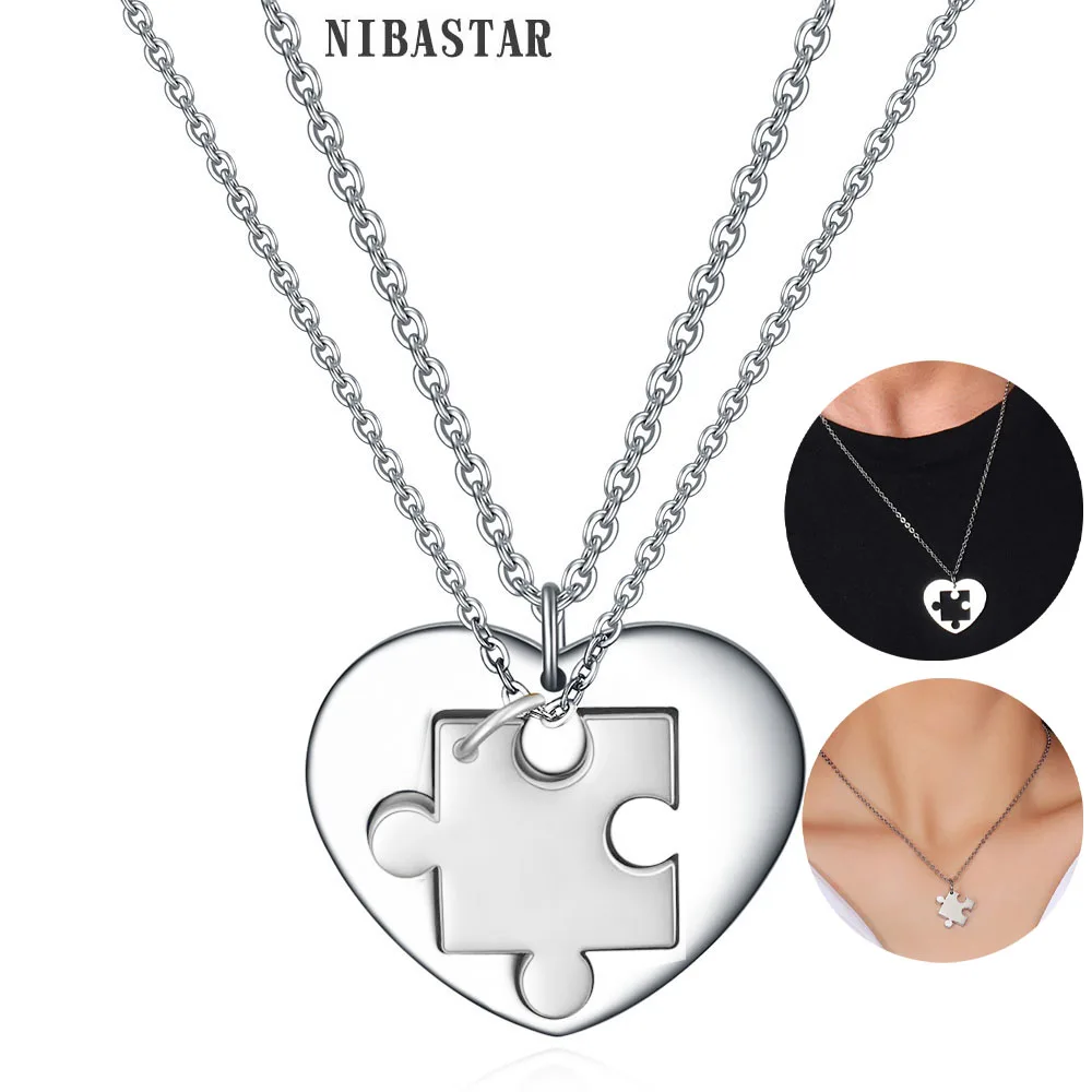 Пользовательское имя 2 шт./компл. сердце головоломка подвески для женщин мужчин никогда не выцветает из нержавеющей стали пара ожерелья Подарок на годовщину