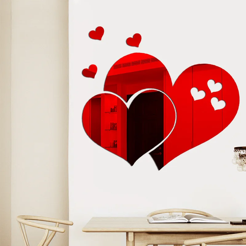 Новинка 2020, зеркальная Настенная Наклейка в виде сердца, украшение для семейной комнаты, декор для ванной, спальни, гостиной