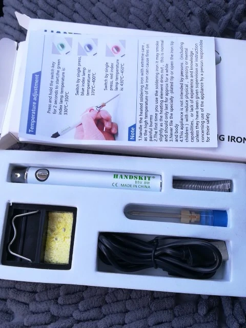 доставка через НП заняла 2 недели. коробочка немного примята, но внутри все целое. уже испробовал, нужно было припаять маленький провод к плате. нагревается очень быстро, как в принципе и охлаждается. подойдёт для мелкой пайки. удобно будет работать в машине без переноски.