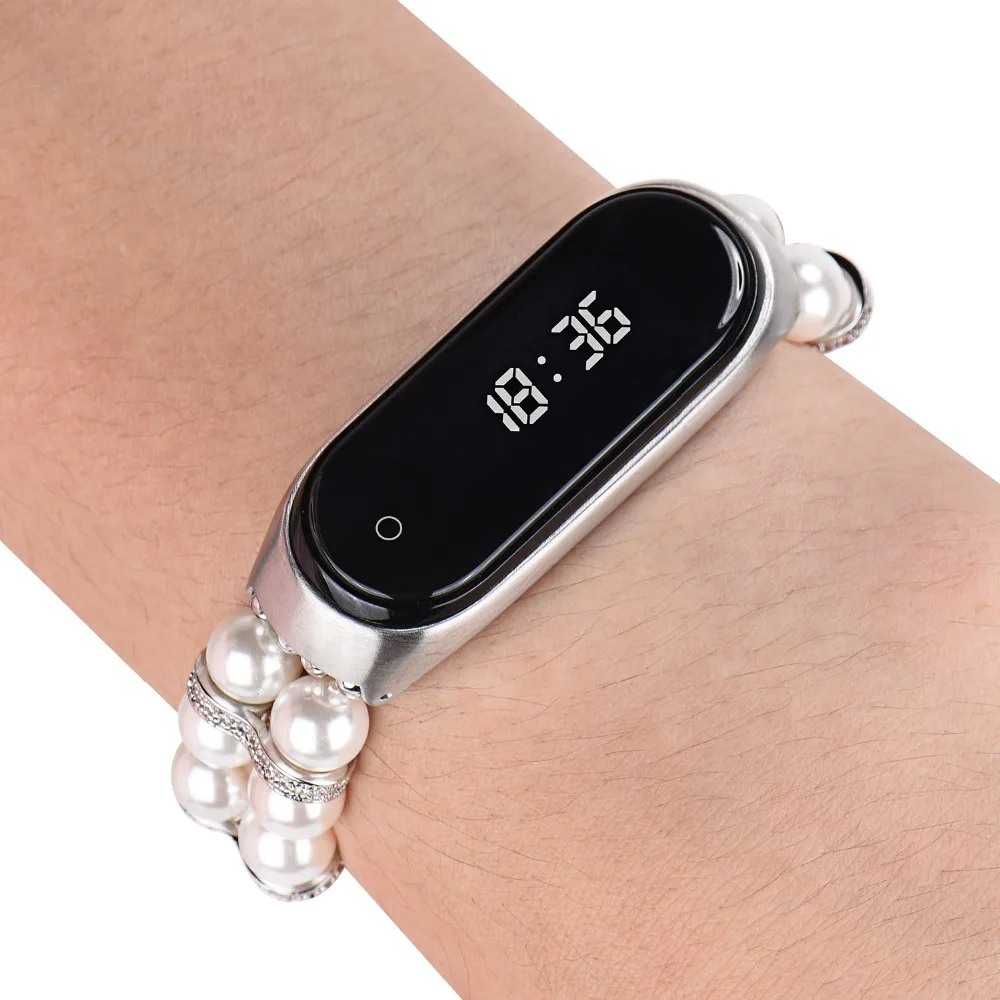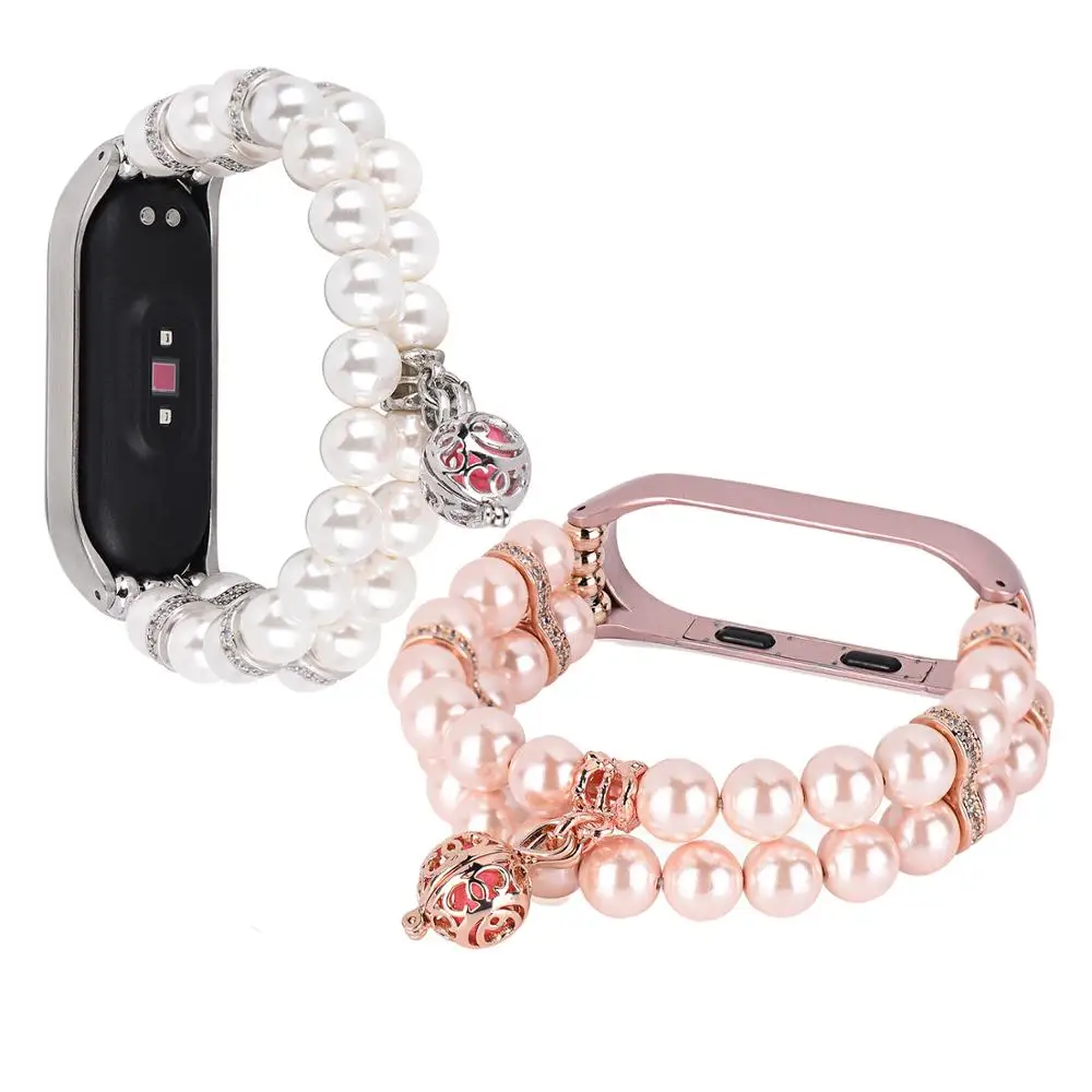 Браслет для Xiaomi Mi Band 4 5, эластичный браслет с бусинами для Xiaomi Band 3 6, женский браслет ручной работы с жемчугом