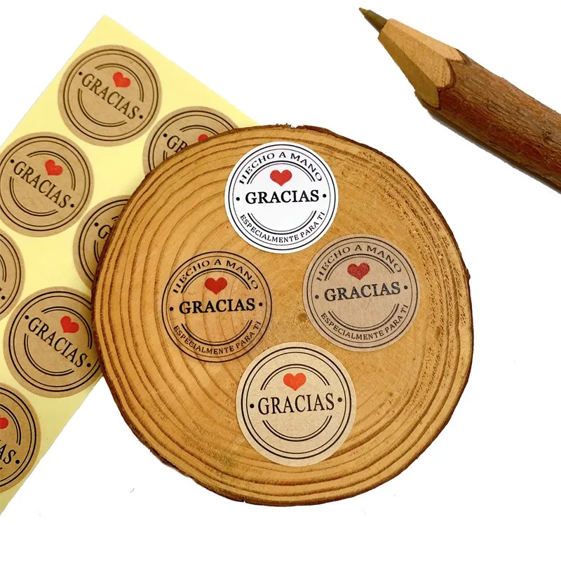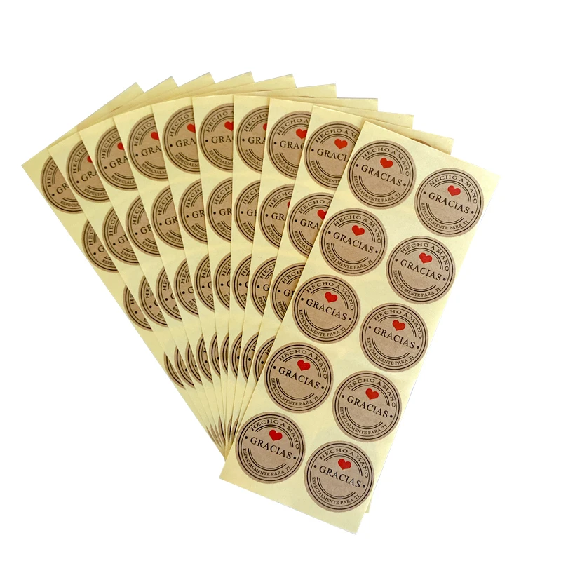 Наклейки Круглые Крафт-Бумажные с красным сердцем, в стиле ретро, 100 шт., крафт-наклейка для запечатывания г.