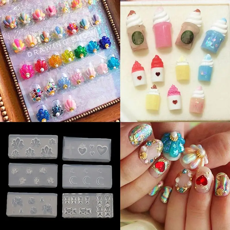 6 шт., ручная работа, Stat Moon Cross, цветок, медведь, дизайн ногтей, силиконовая форма, набор для вырезания ногтей, шаблоны для дизайна ногтей, Maincure инструменты