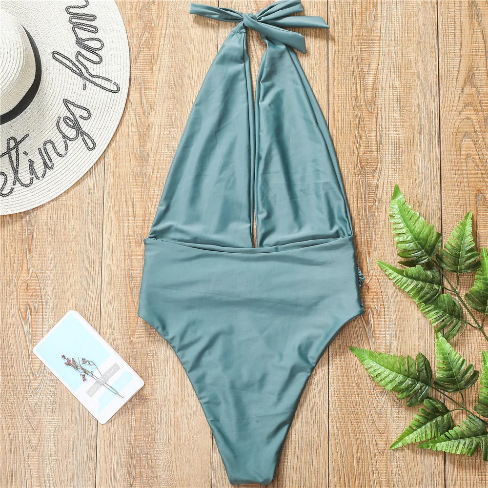 Купальник vigoкейси с лямкой на шее, женский сексуальный слитный купальный костюм 2020, женский купальный костюм с глубоким V-образным вырезом и поясом, монокини с высокой талией, купальник
