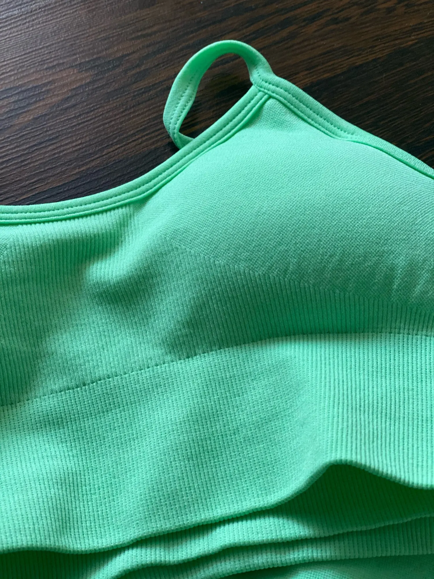 Качество материала оставляет конечно желать лучшего, лосины и шорты просвечивают довольно сильно и они очень туго надеваются, лучше брать низ на размер больше. Но верх мне очень понравился, сидит плотно, но я так и люблю, очень красиво сели оба топа, если бы ещё и низ соответствовал цены бы не было. Но в целом за такую стоимость неплохо, пришёл товар всего за неделю, что тоже не может не радовать. В целом, я довольна