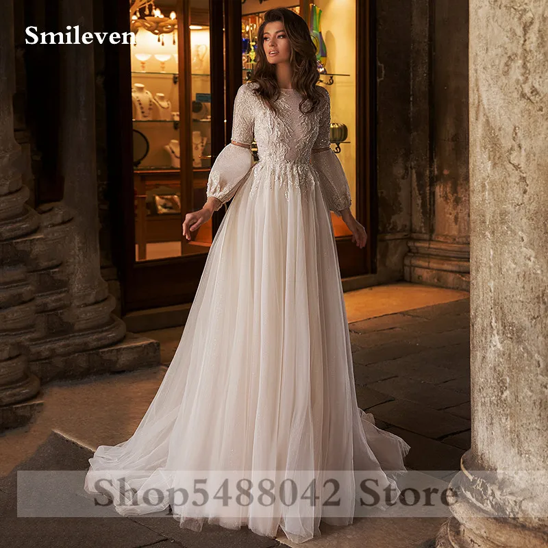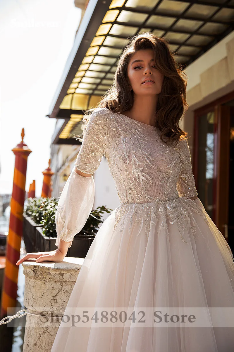 Платье Свадебное Smileve в стиле бохо с пышными рукавами, элегантное кружевное платье невесты с бисером и аппликацией, для свадьбы