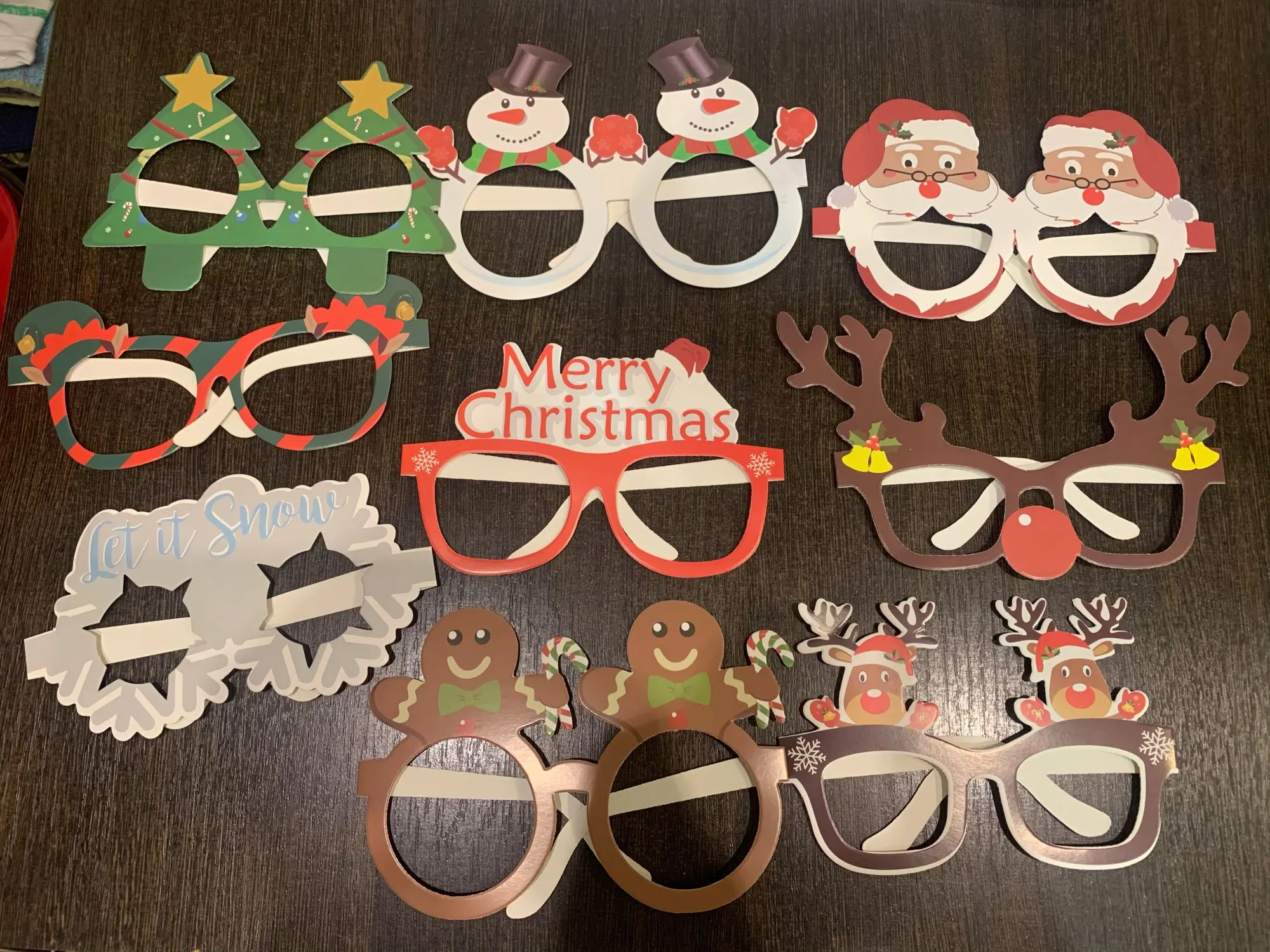 Картонные очки, конечно, по цене не должны мечтать, но очень красивые на рождественские фотографии с семьей