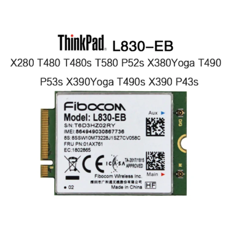 01AX761 Fibocom L830-EB WWAN карта для Lenovo Thinkpad X280 T480 T490 T490s T590 P53s X390 L490 L590 P43s T480s X390 Yoga