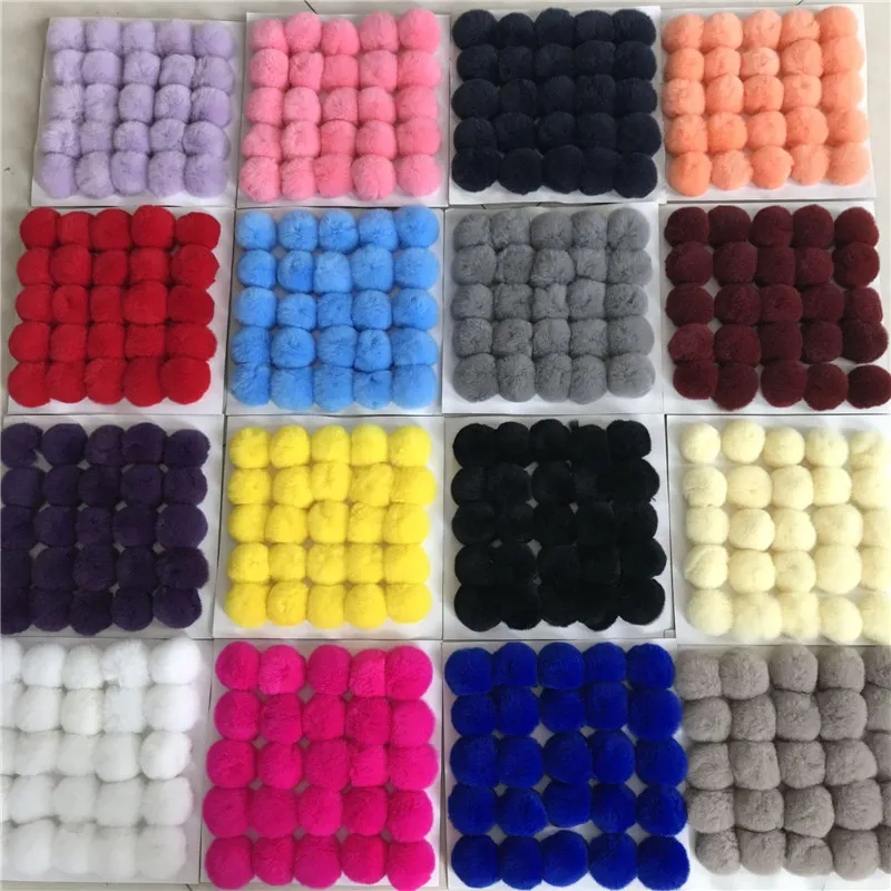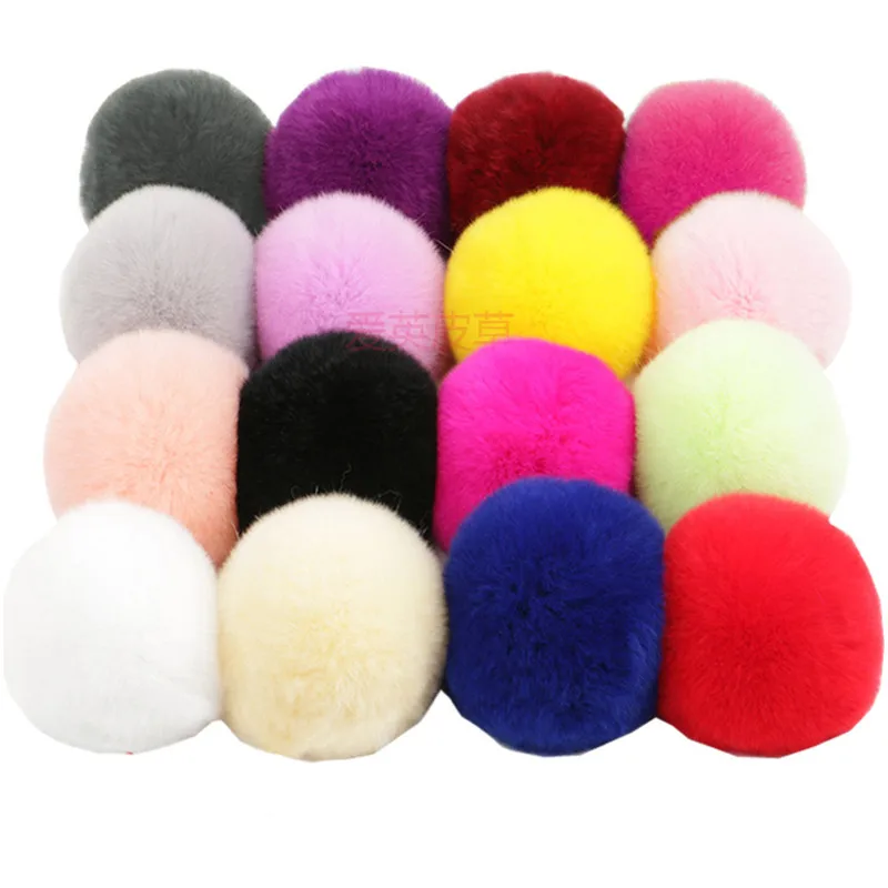 Помпон автомобильный из кроличьего меха, 6 см, настоящий мех кролика, для брелока, меховых сумок, подвесок, с пушистыми кроликами, понпонами, 4 шт.