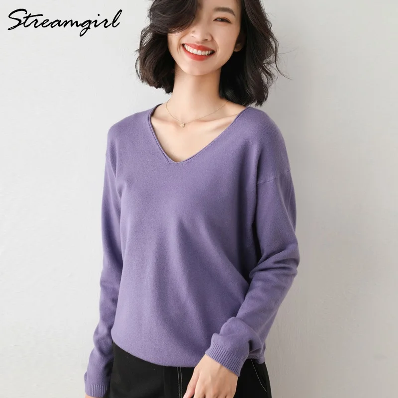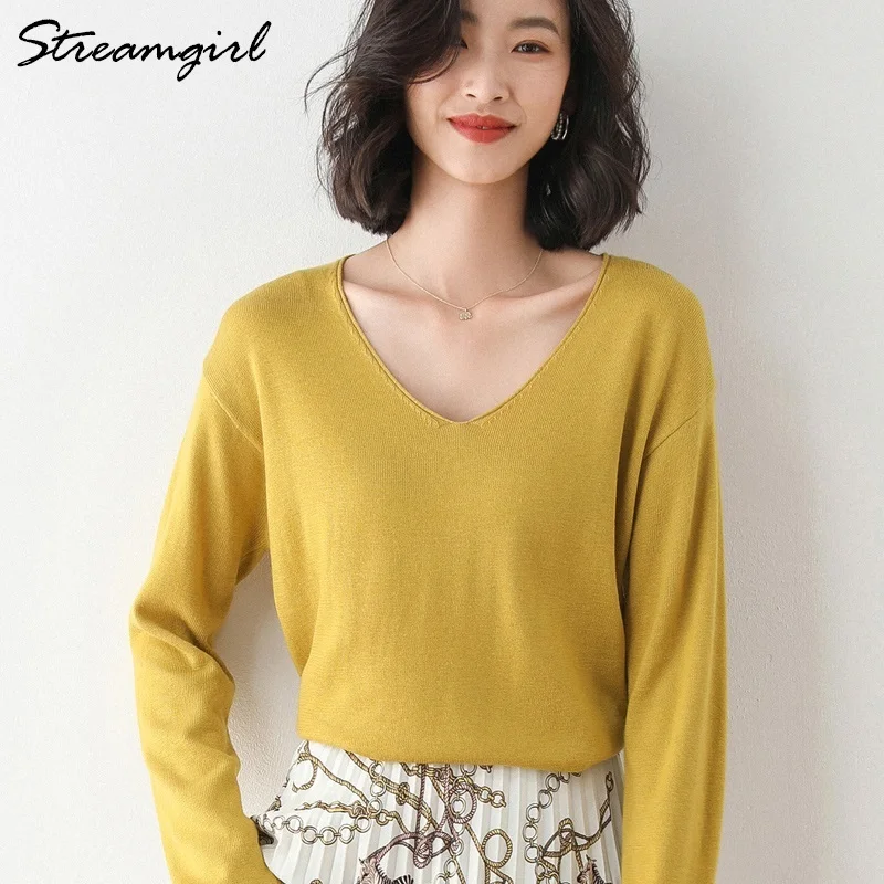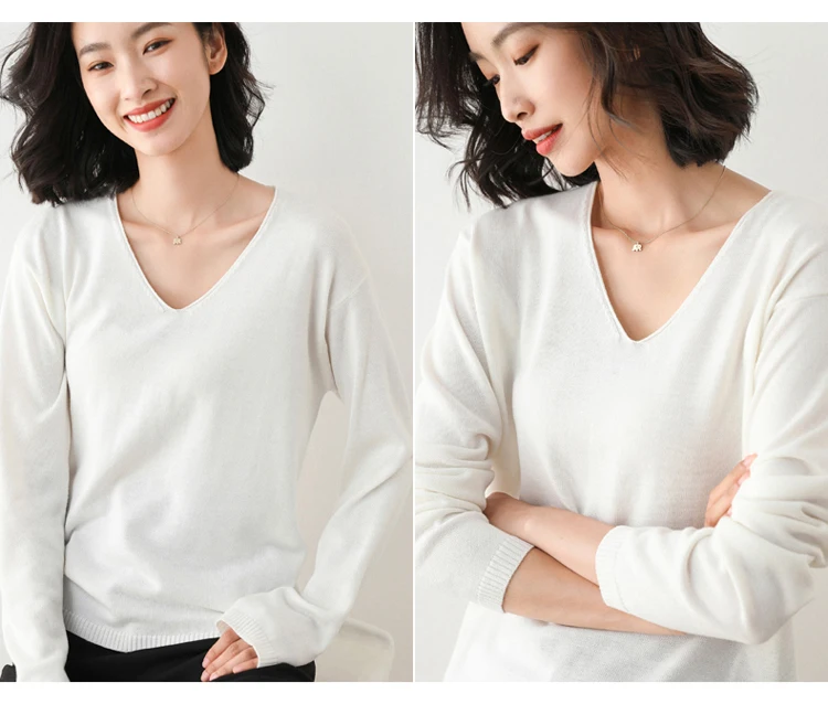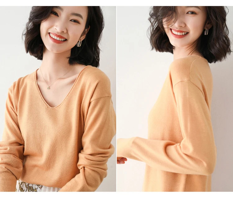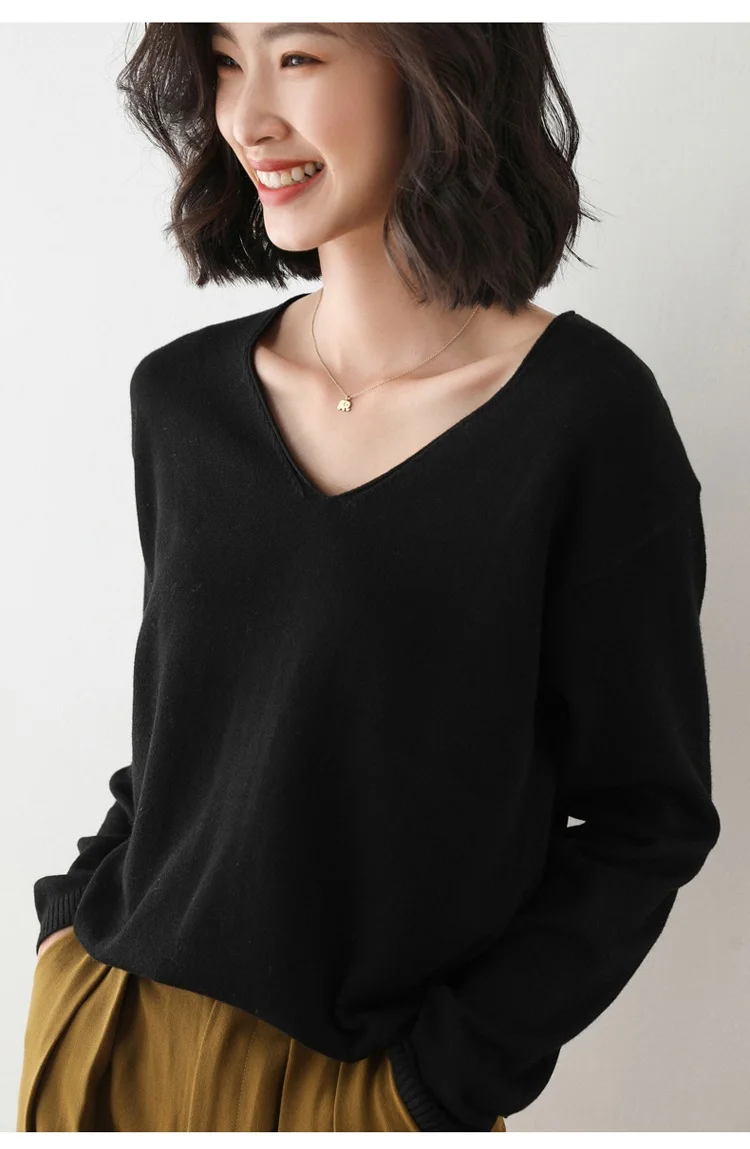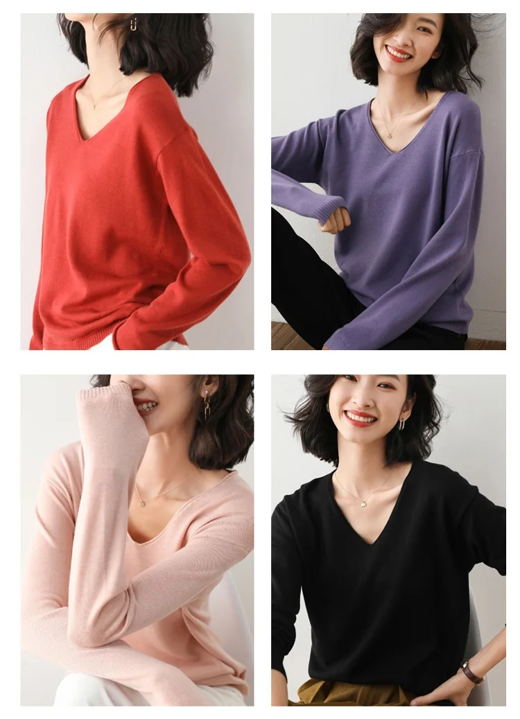 Женский тонкий свитер, свободный трикотажный пуловер большого размера с v-образным вырезом, для осени и зимы