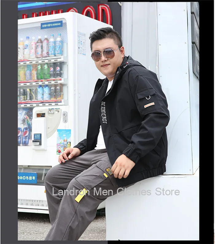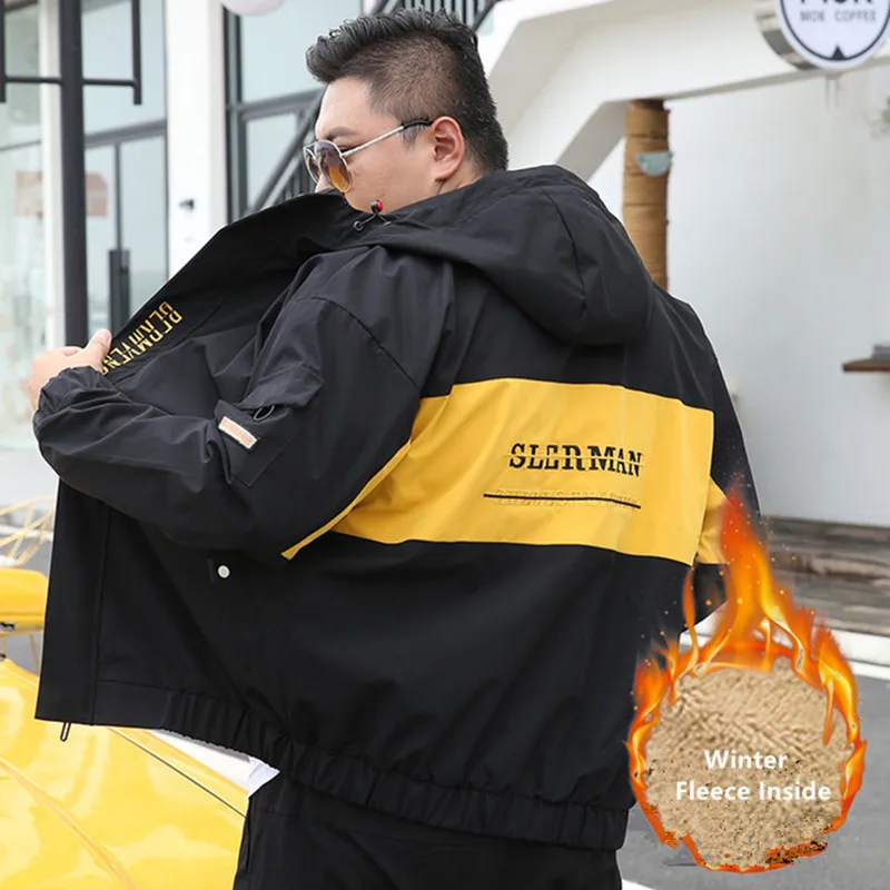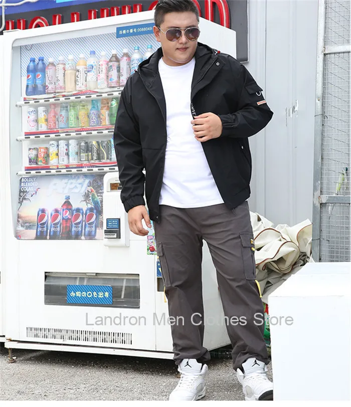 Мужская куртка, осенняя свободная черная повседневная толстовка с капюшоном, мужская мода, большие размеры 5XL 6XL 7XL 8XL, ветровка, флисовое зимнее пальто, мужская одежда