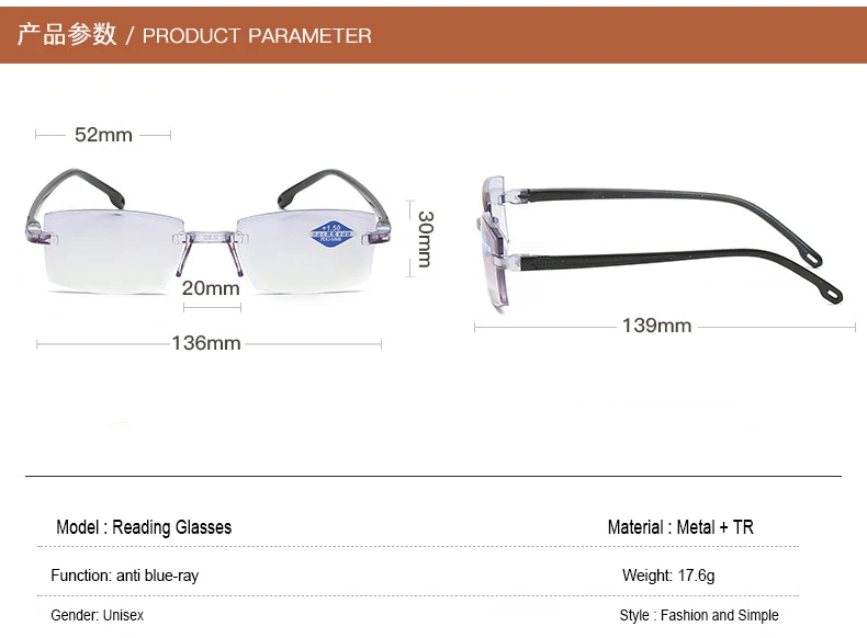 Очки для чтения унисекс, без оправы, с защитой от синего света, + 1,0, 1,5, 2,0, 2,5
