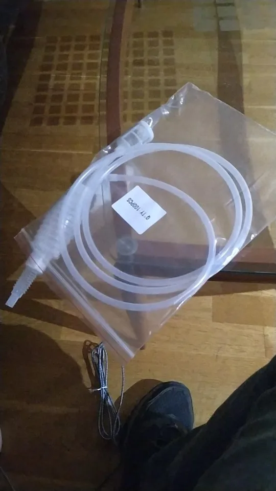 штуковина нормально работает, трубка только очень жёсткая, можно сказать дубовая, при крутом изгибе заламывается