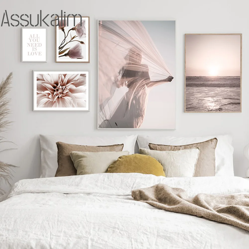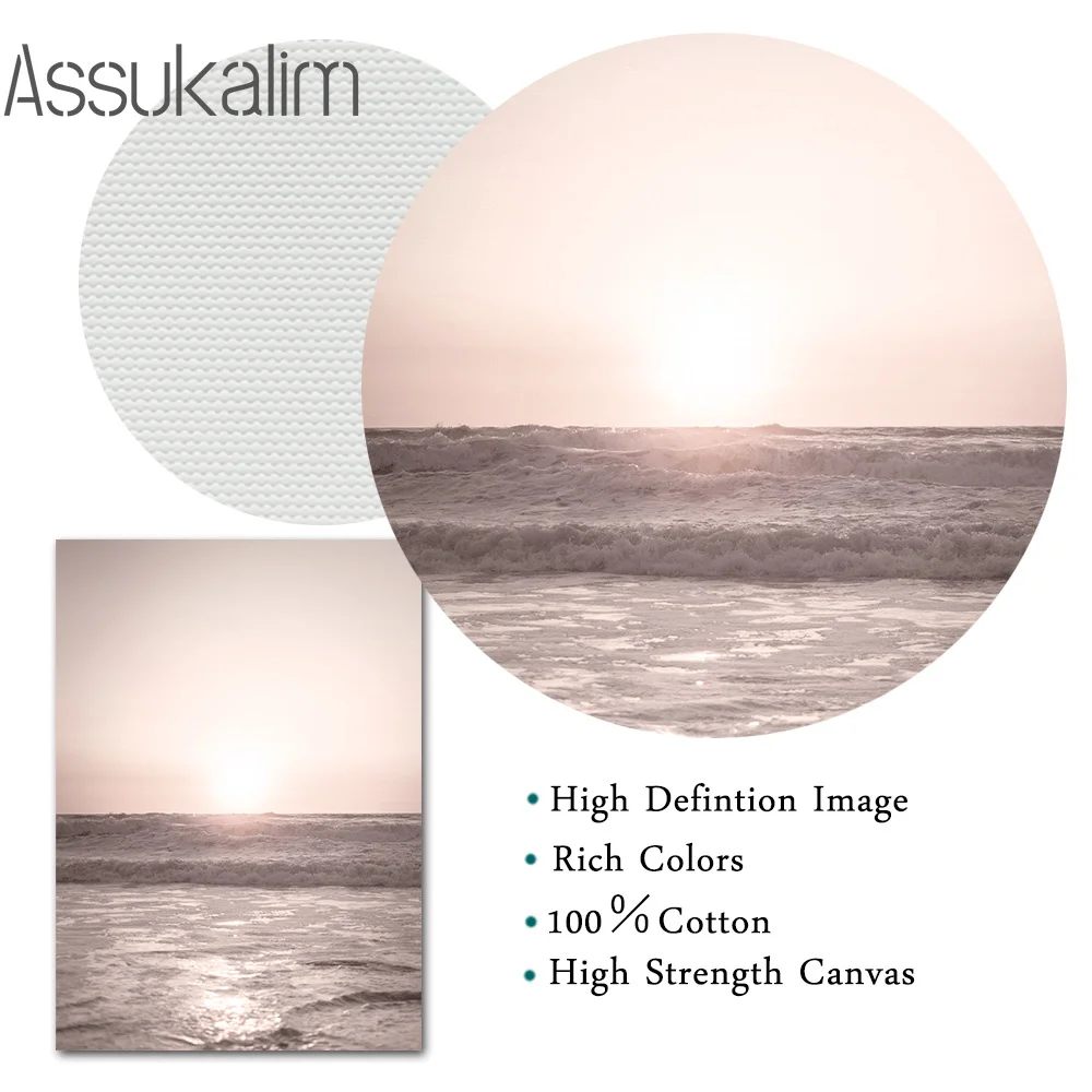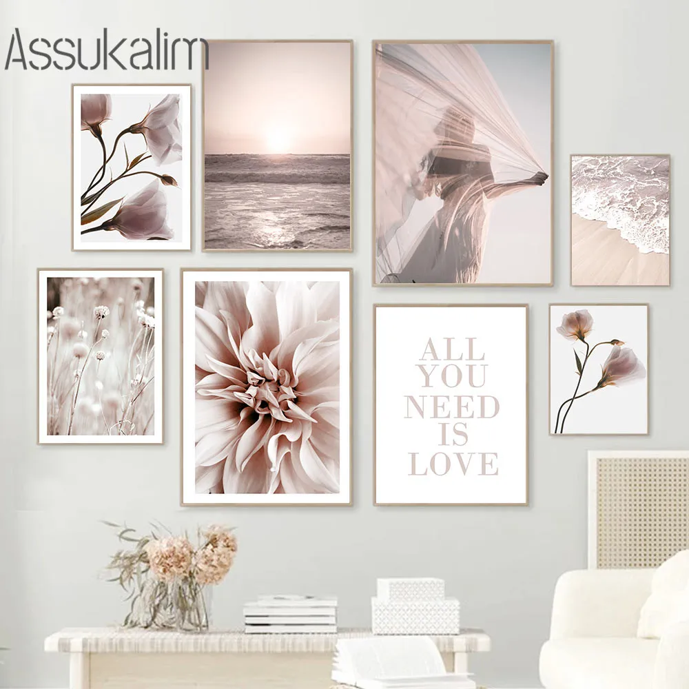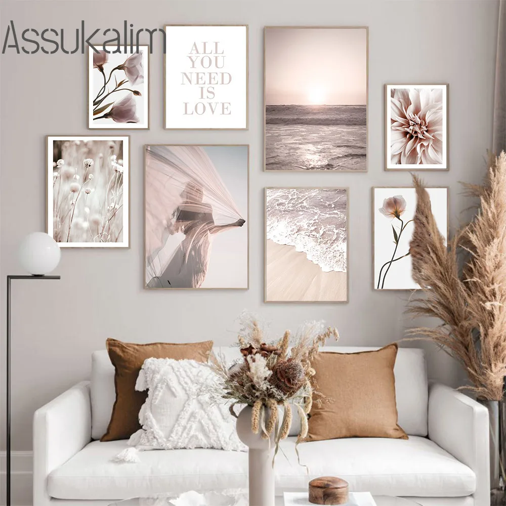 Скандинавский постер, пейзаж океана, пляжа, холст, картина, морской рассвет, цветок, настенные постеры, Скандинавская картина на стену, декор для гостиной