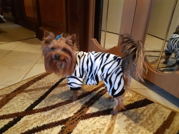 Пришло быстро, ожидания оправдались полностью. Мягкая, тёплая, но пока не знаю как поведёт себя после стирки. Брали на Йорика 1,8 кг 25 см по спинке, подошло идеально. Собака чувствует себя в нем комфортно, движения не стесняет.