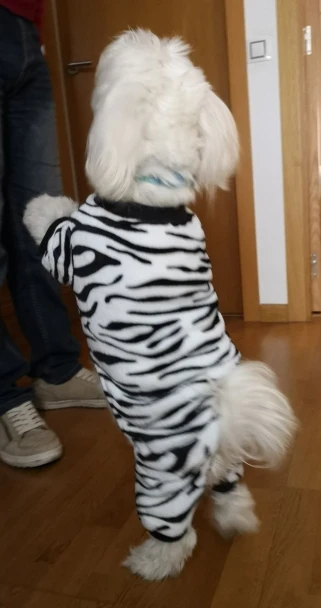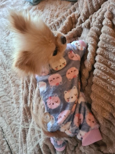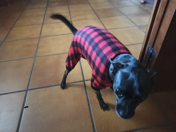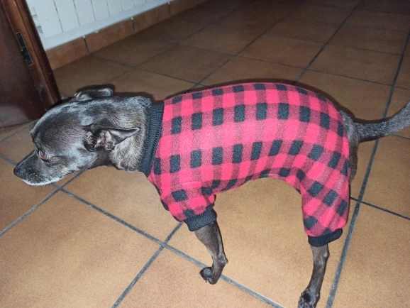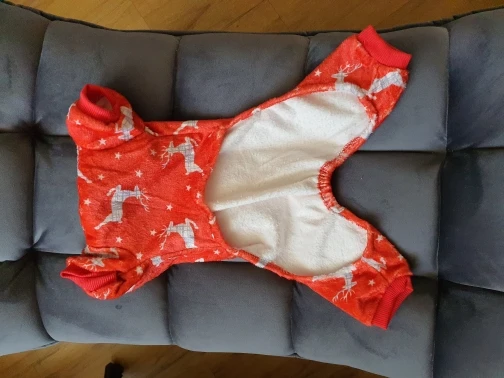 Очень мягкая Пижама/костюм для волос и хорошо сидит на собаке, хорошо измеряется. Я не ставлю ему 5 *, потому что он немного тонкий, он не пухленький. Но в целом хорошо