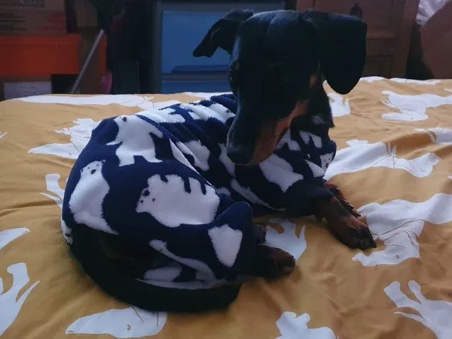 Из-за Covid-19, что я себе представлял, я никогда не получил эту пижаму для своей собаки, но продавец был очень быстро вернуть мне деньги.