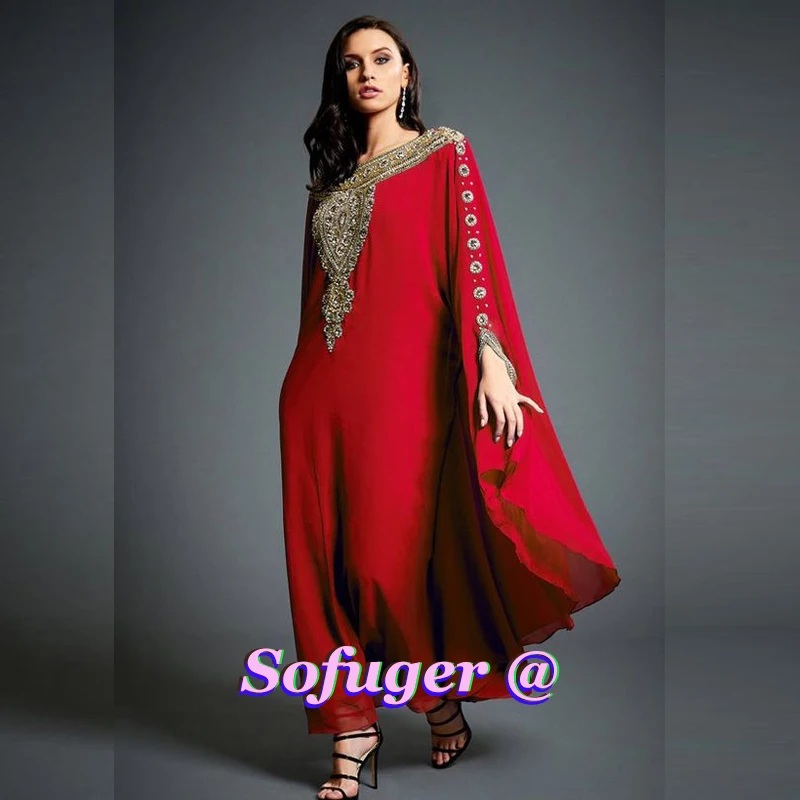 Длинные вечерние платья в мусульманском стиле, красные шифоновые платья для особых случаев в саудовском, арабском стиле, Женский вечерний костюм