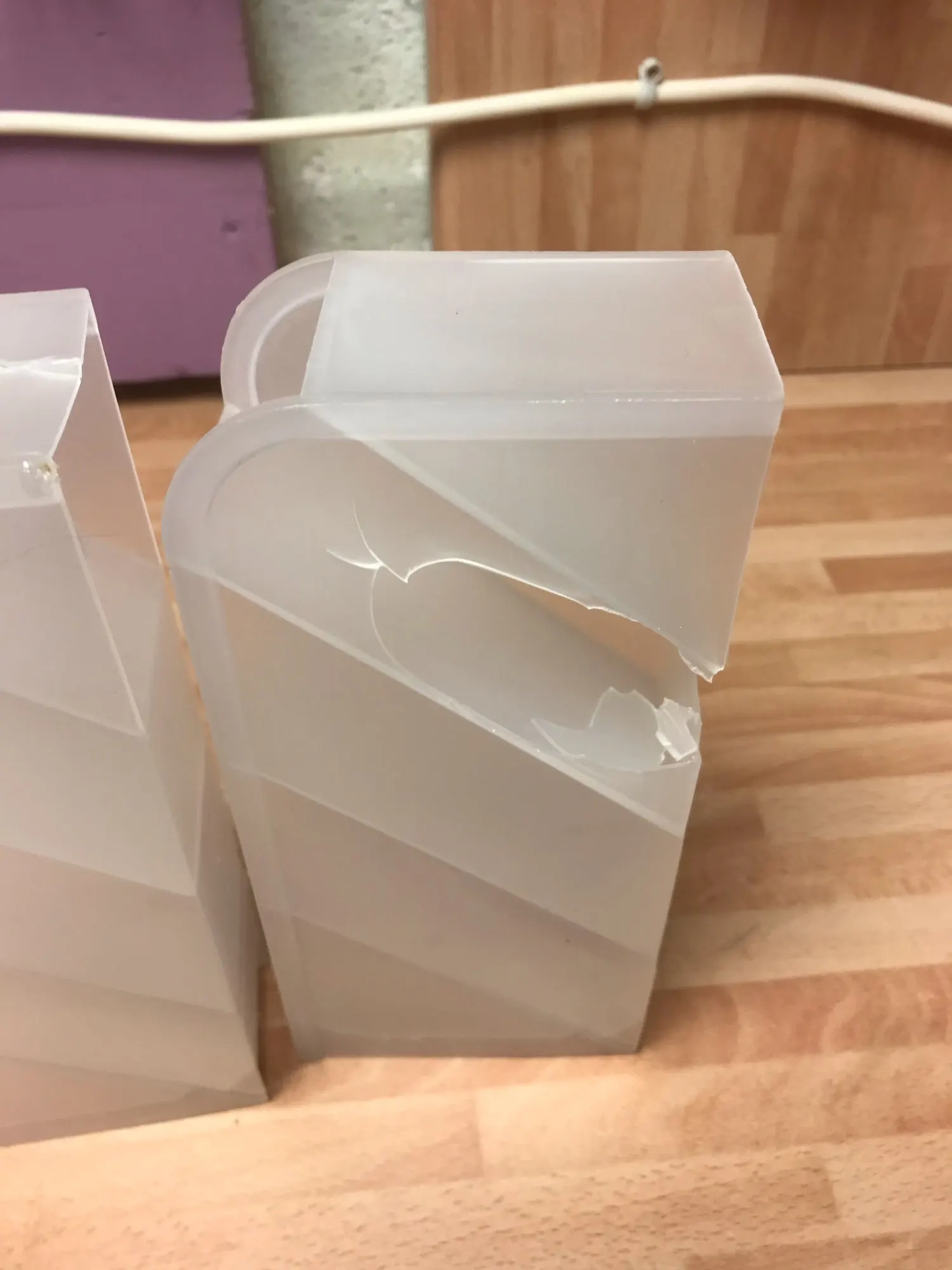 Niestety zbyt słabe zabezpieczenie. Jeden z pojemników doszedł pęknięty.