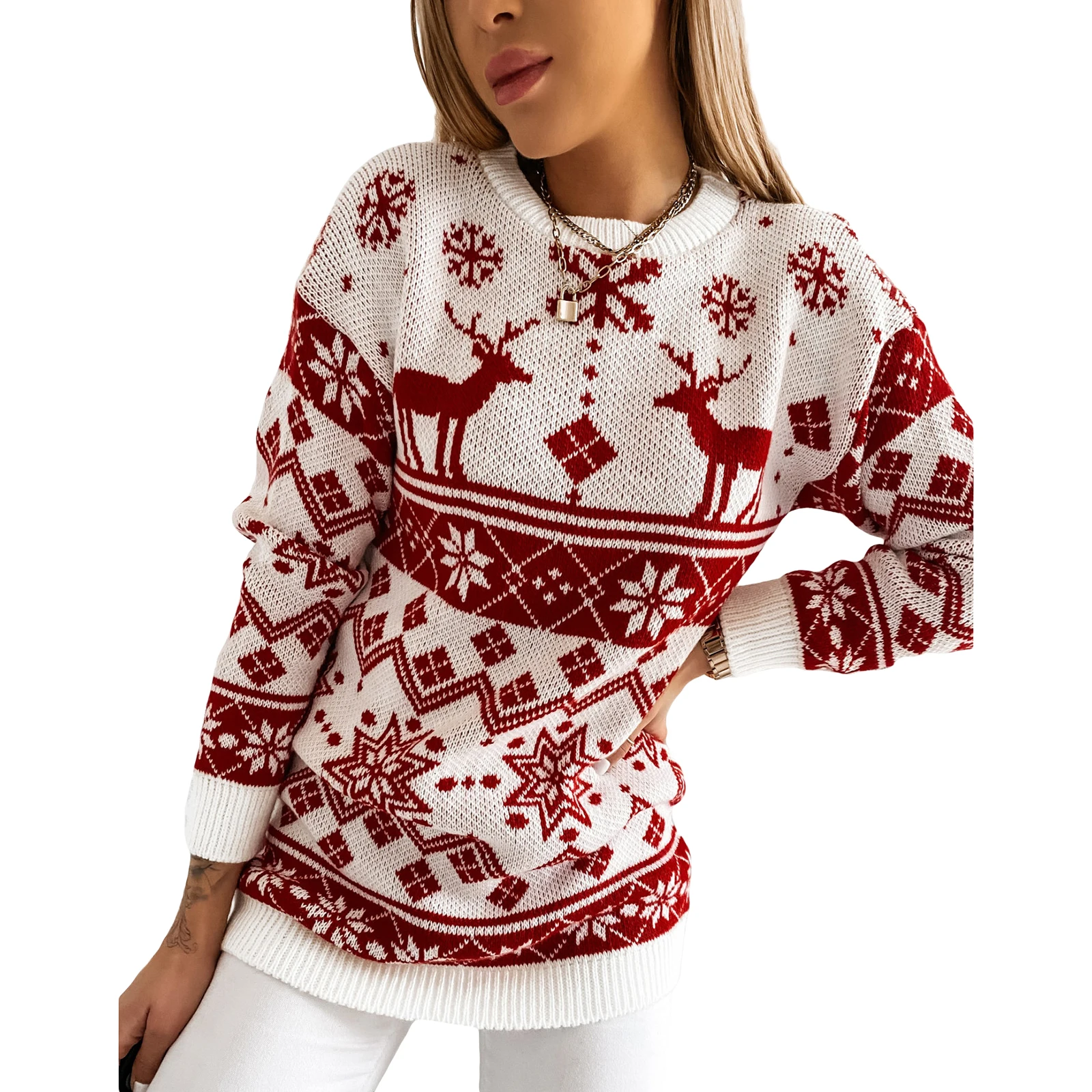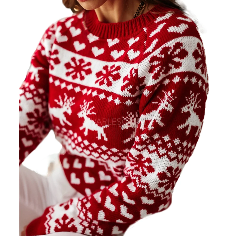 Женский Рождественский свитер с длинным рукавом и круглым вырезом
