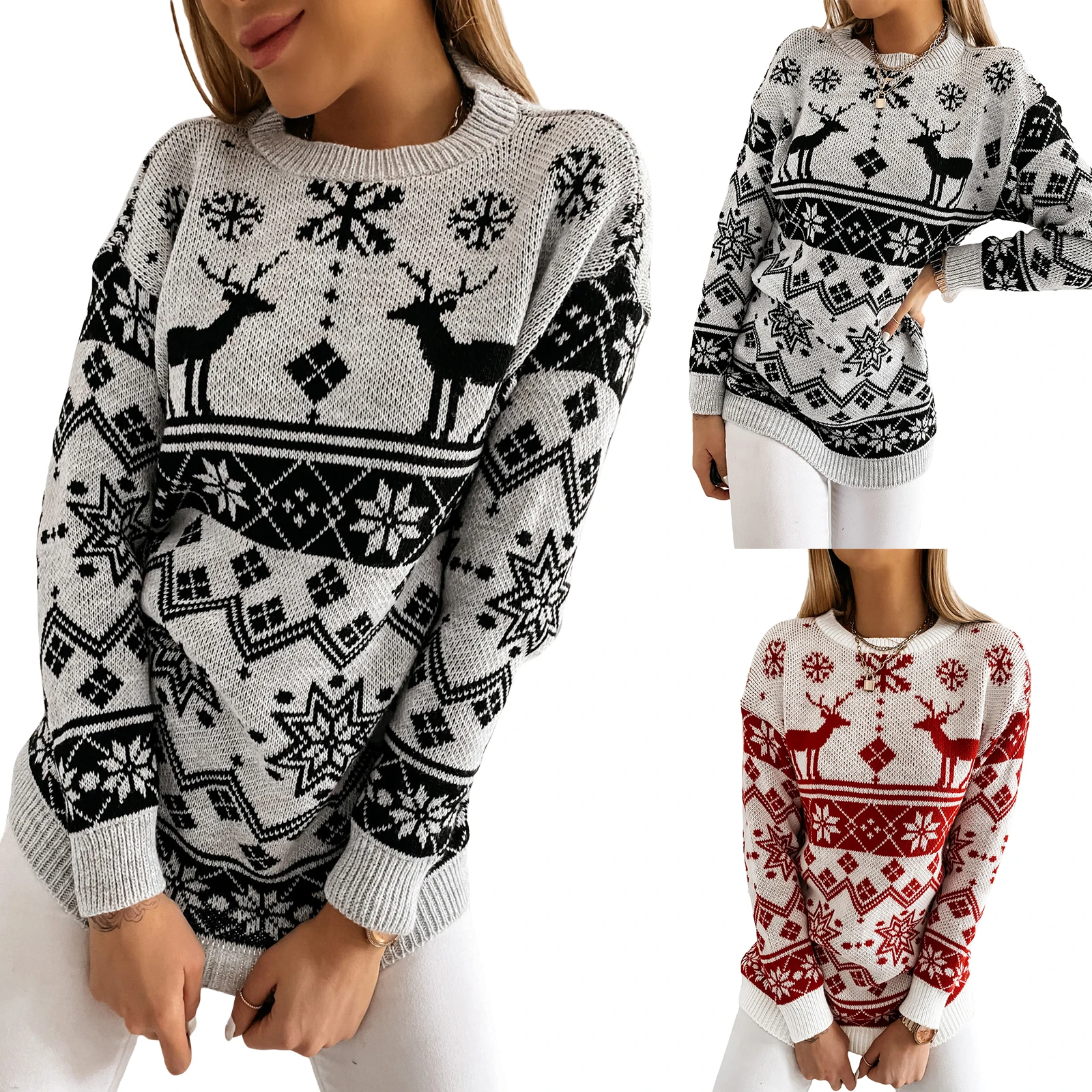 Номер моделиWomen Christmas Sweaters Santa Snowflake Xmas Printing O-neck