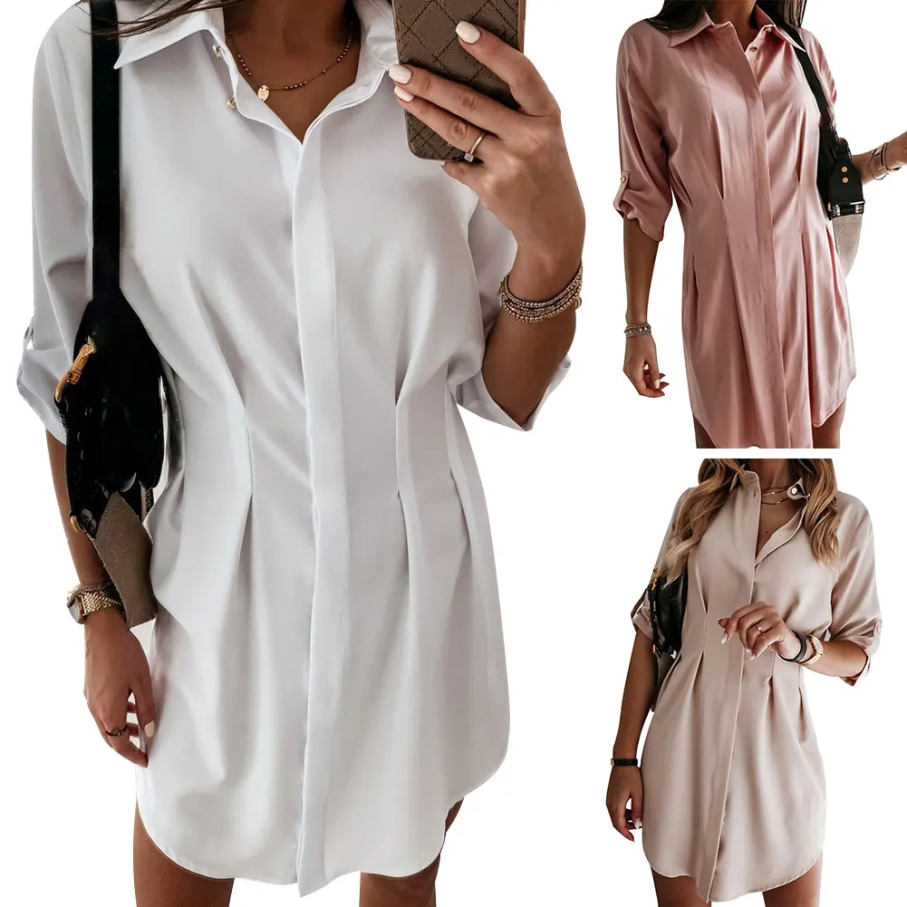 Платье-рубашка женское летнее, с длинным рукавом 34, асимметричным подолом и пуговицами