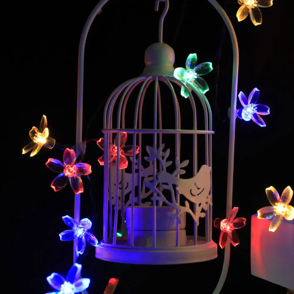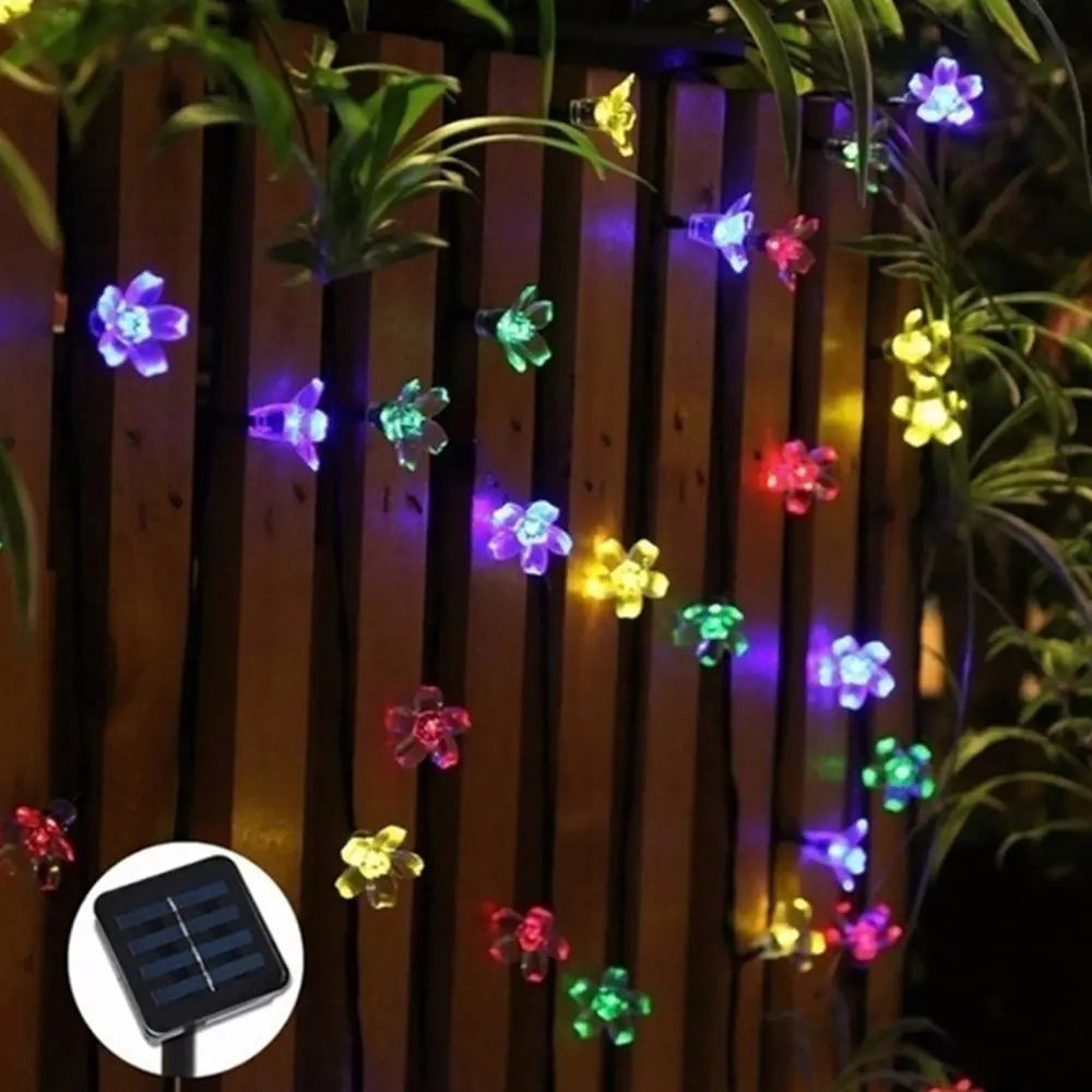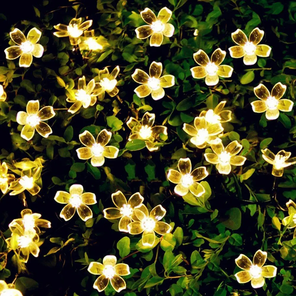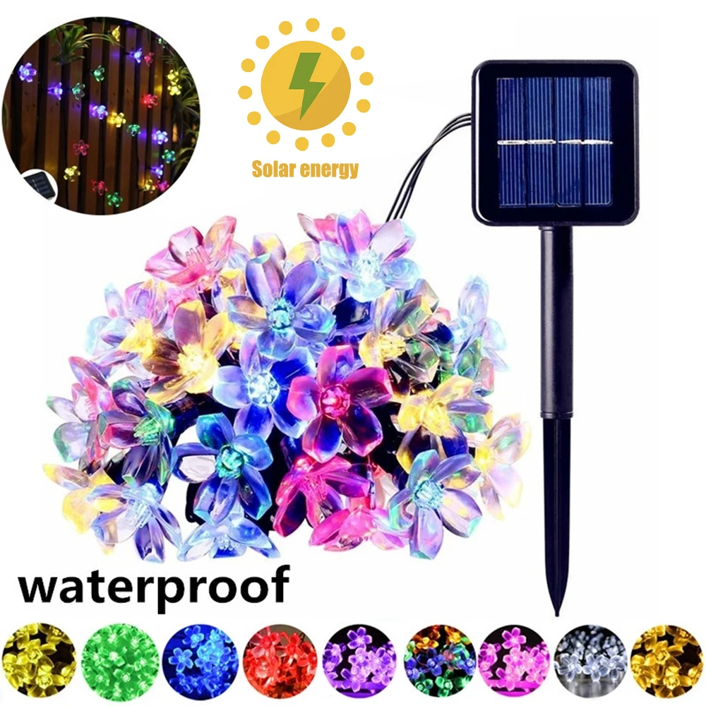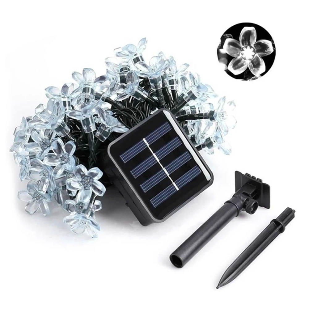 Светодиодная уличная гирлянда сакуры на солнечной батарее, водонепроницаемая лампа для газона, Рождественский и новогодний декоративный уличный светильник, 7 м, 50 светодиодов, IP65
